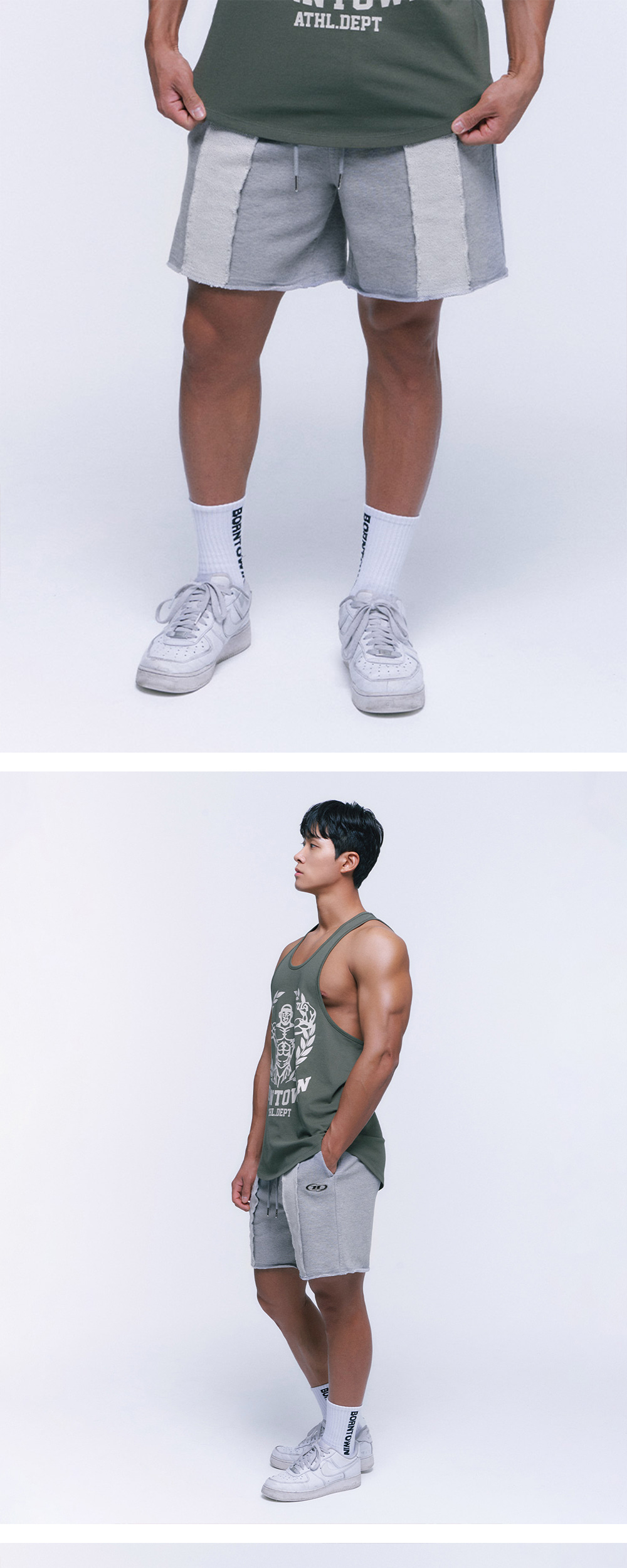 본투윈 리버스 믹스 하프팬츠 숏버전 멜란지 그레이