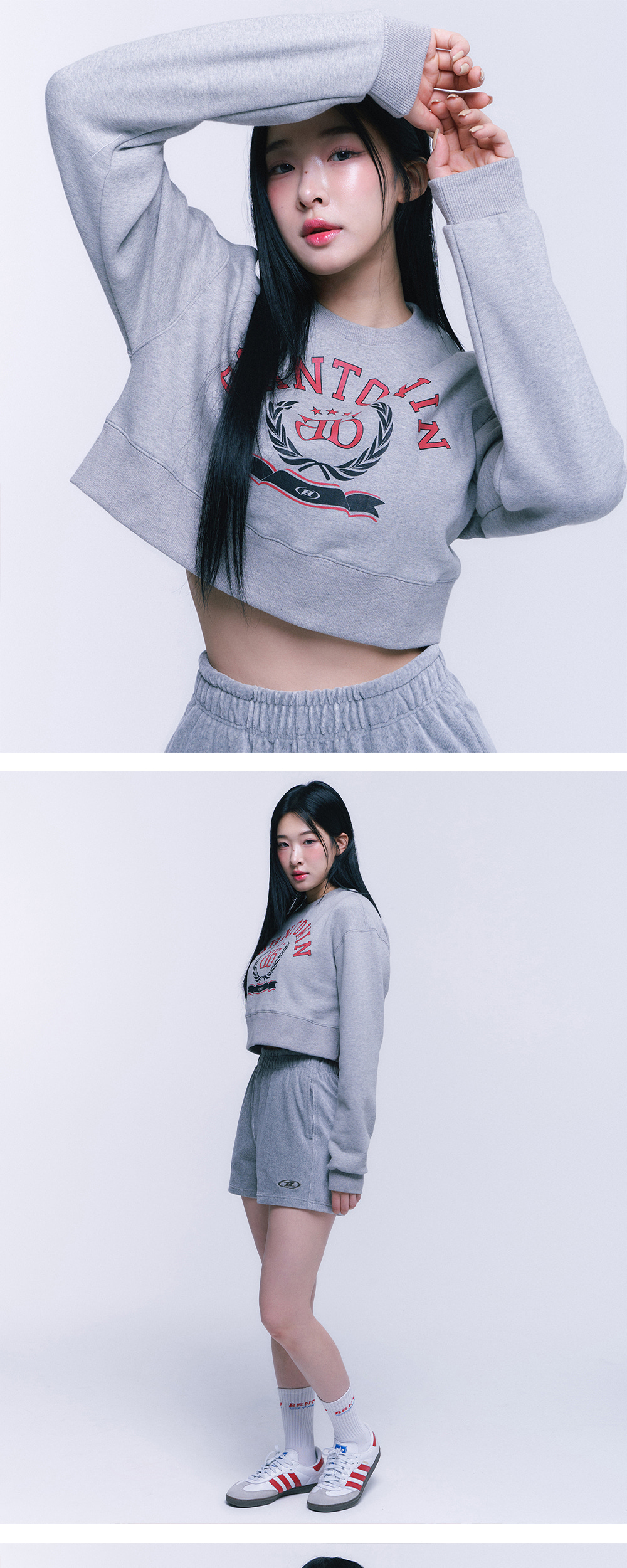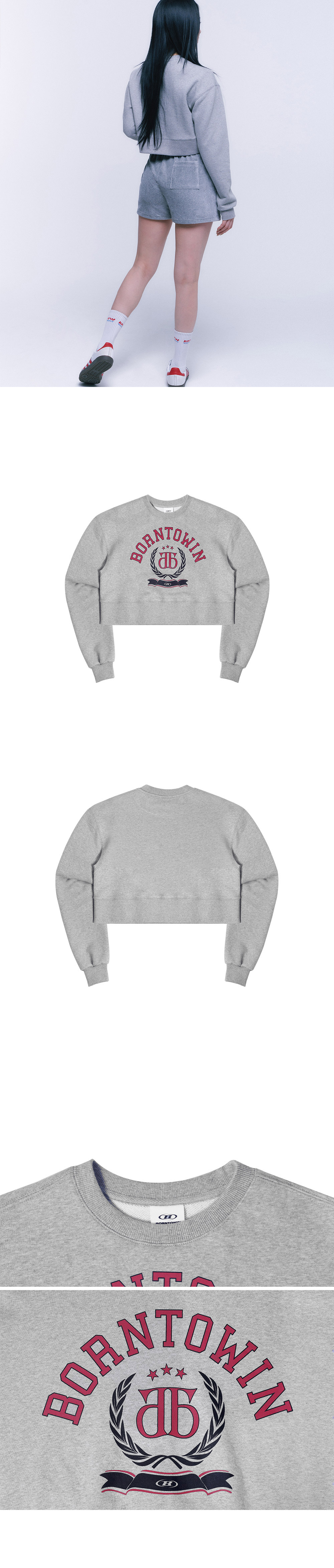 본투윈 더블 B 엠블럼 크롭 스웨트셔츠 멜란지 그레이