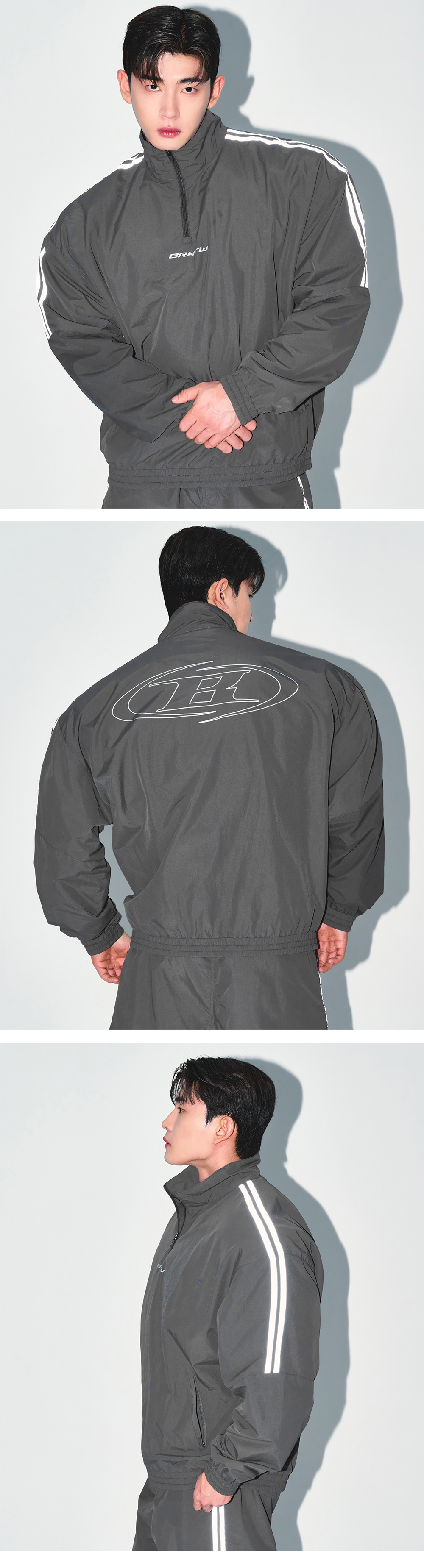 BORN TO WIN Reflective Line Big Symbol Anorak Jaket Charcoal