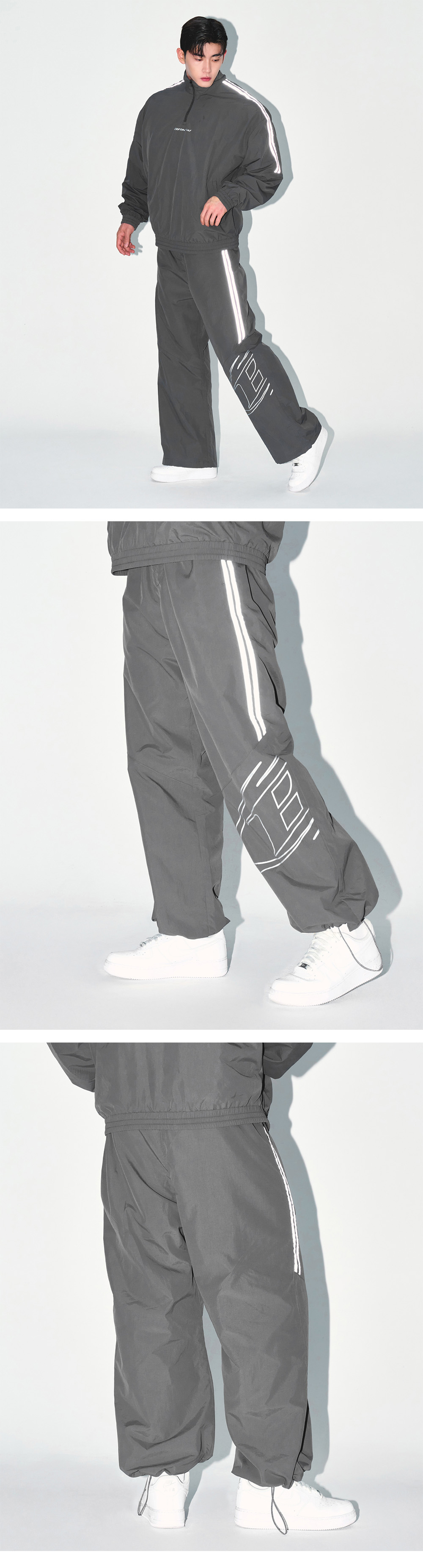 본투윈 리플렉티브 라인 빅 심볼 와이드팬츠 차콜