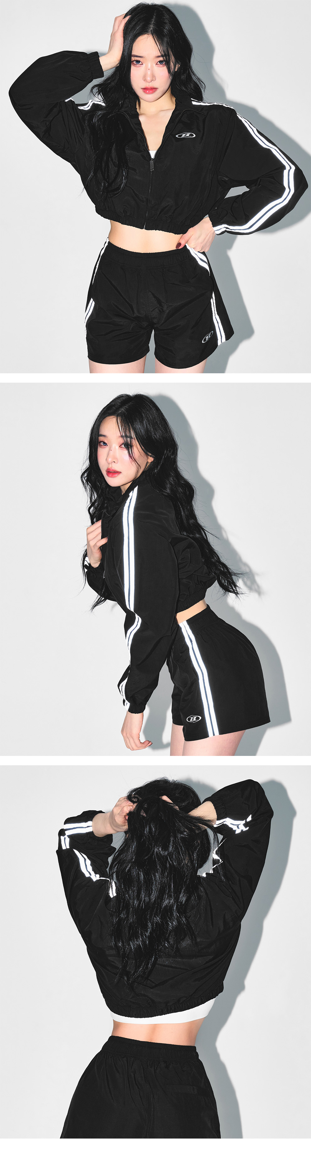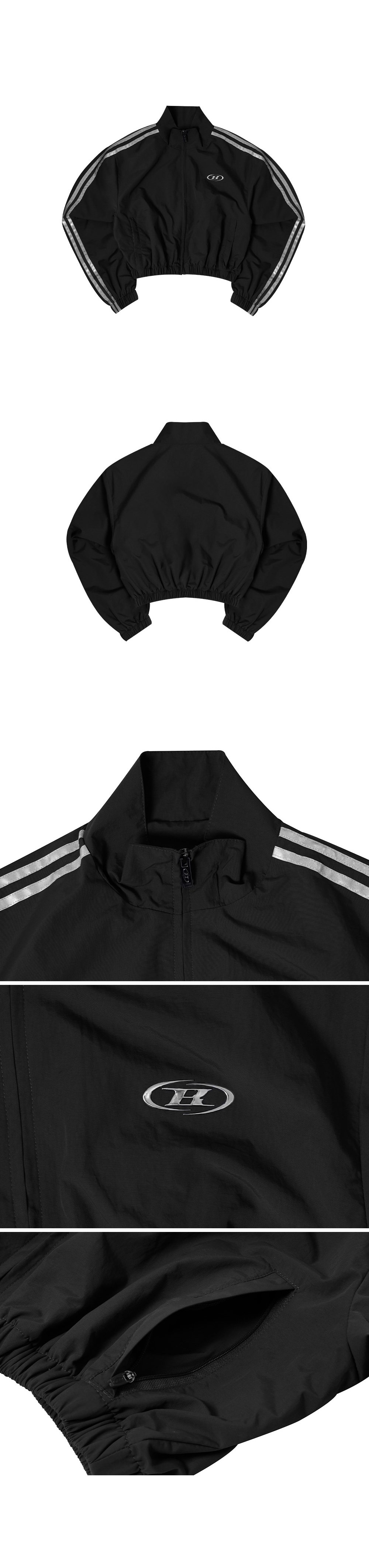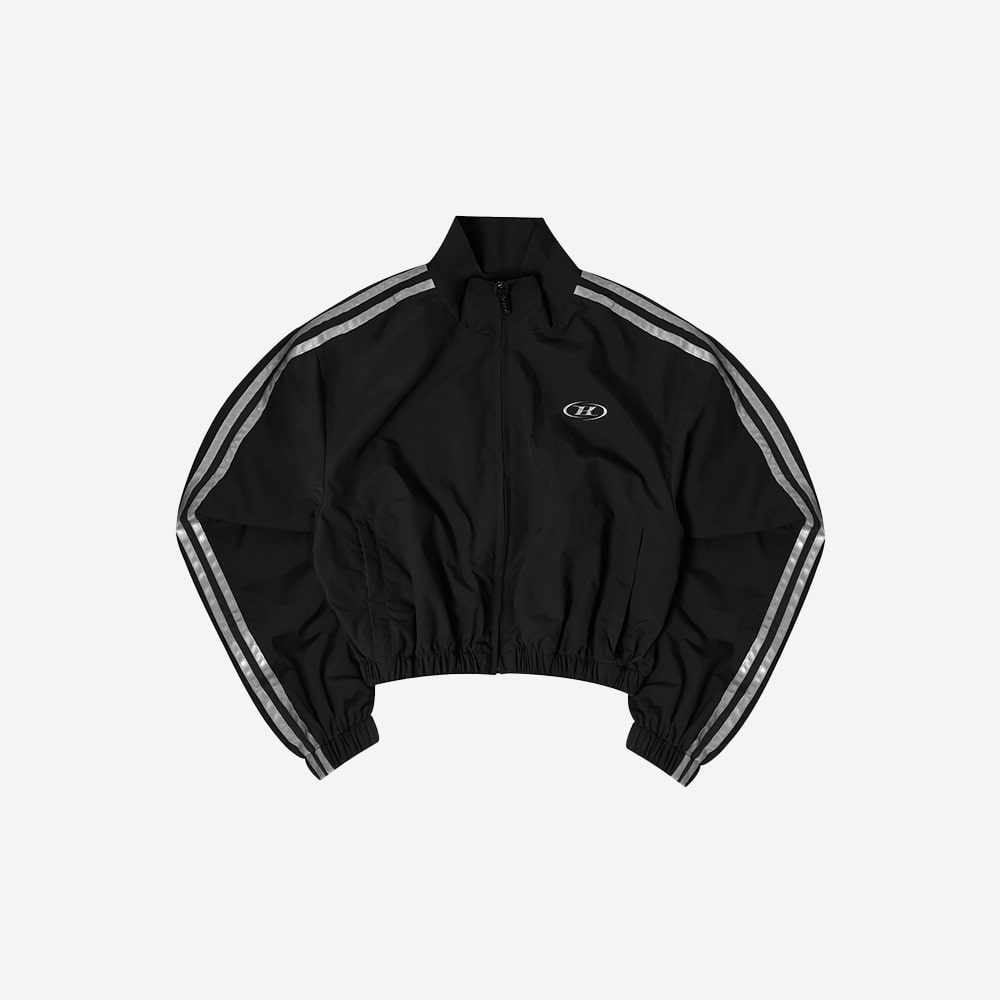 본투윈 리플렉티브 라인 크롭 윈드 브레이커 블랙
