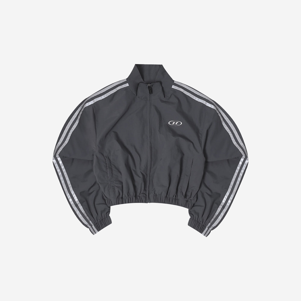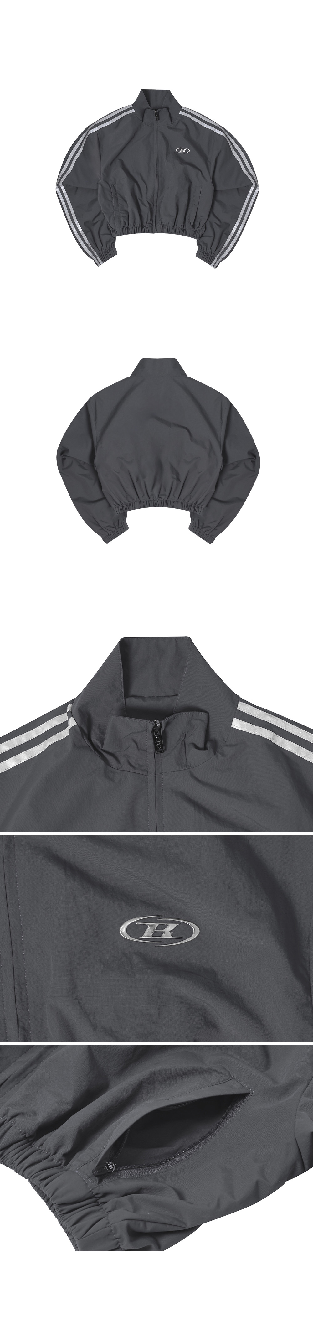 본투윈 리플렉티브 라인 크롭 윈드 브레이커 차콜