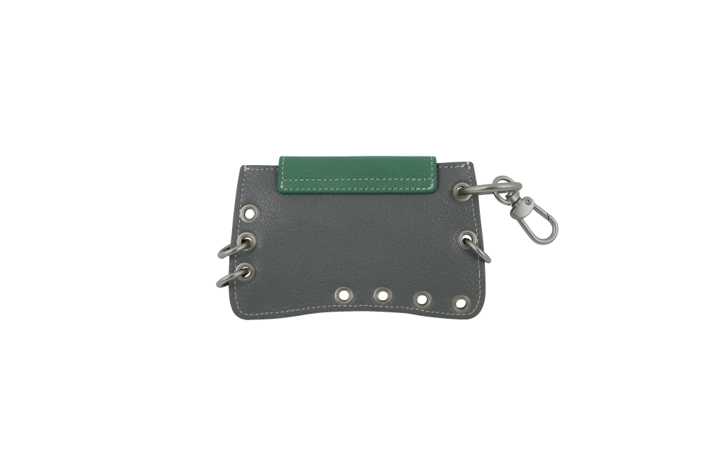 빈티지 스니커즈를 모티프로 한 카드 월렛. 실버 메탈 장식으로 마감. · 고급 고트 레더 소재로 제작한 오브제 타입의 월렛 · 키링을 걸 수 있는 유틸리티 O링과 아일렛 · 2칸의 수납부 · 탈부착 가능한 오픈형 O링