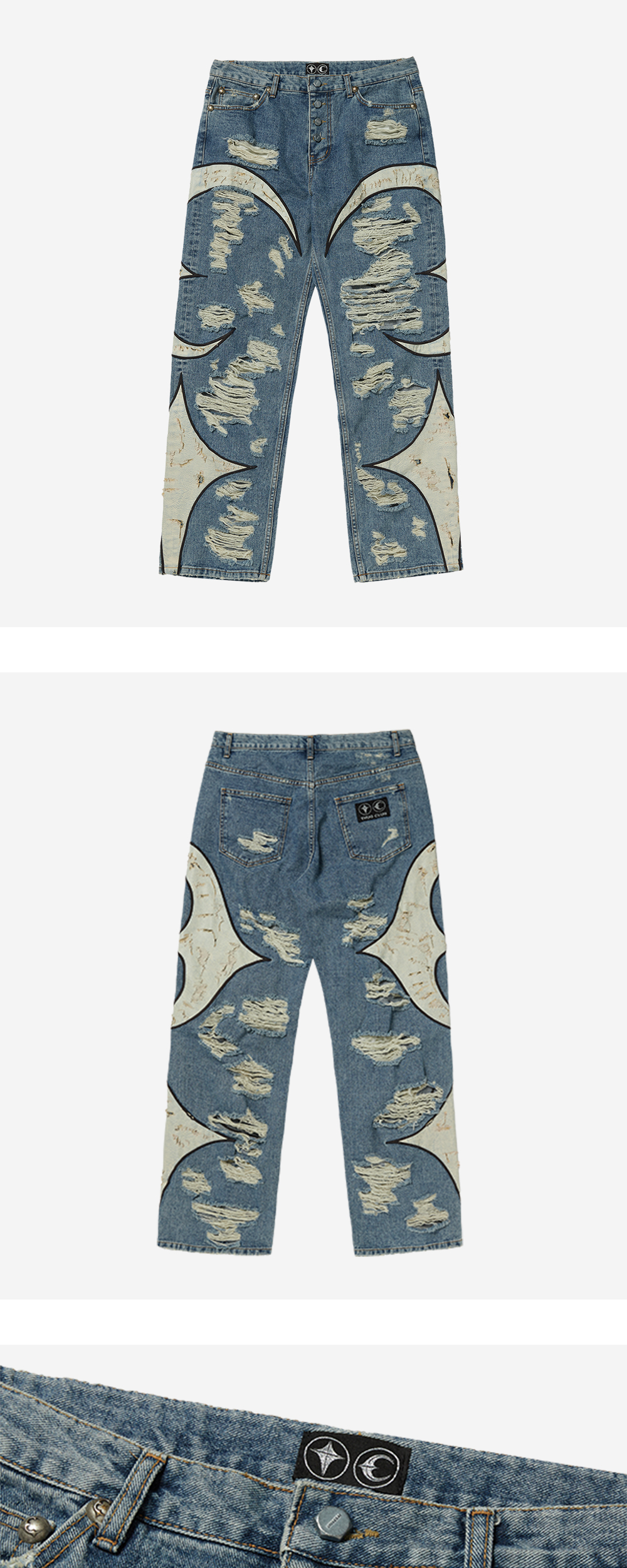 TC 레더 워싱 데님 팬츠 디자인에 강렬한 데미지를 더한 떠그 클럽의 워싱 데님 팬츠입니다. - TC 리벳 - 백 포켓에 적용된 TC 라벨 - 의도적인 데미지 가공 - 오버사이즈 핏 * 리벳, 엠블럼이 떨어질 위험이 있어서 건조기 사용 불가하며 손세탁을 권장합니다. * M, L, XL 사이즈는 2, 3, 4 사이즈와 동일합니다.