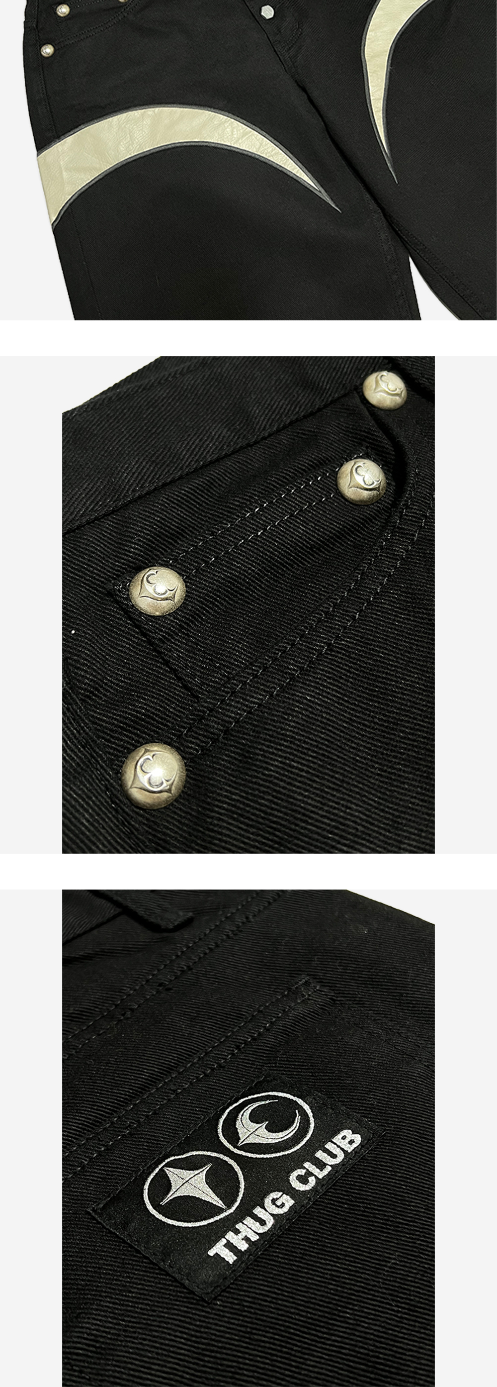 Thug Club TC Leather Washing Denim Pants Black White - 24FW