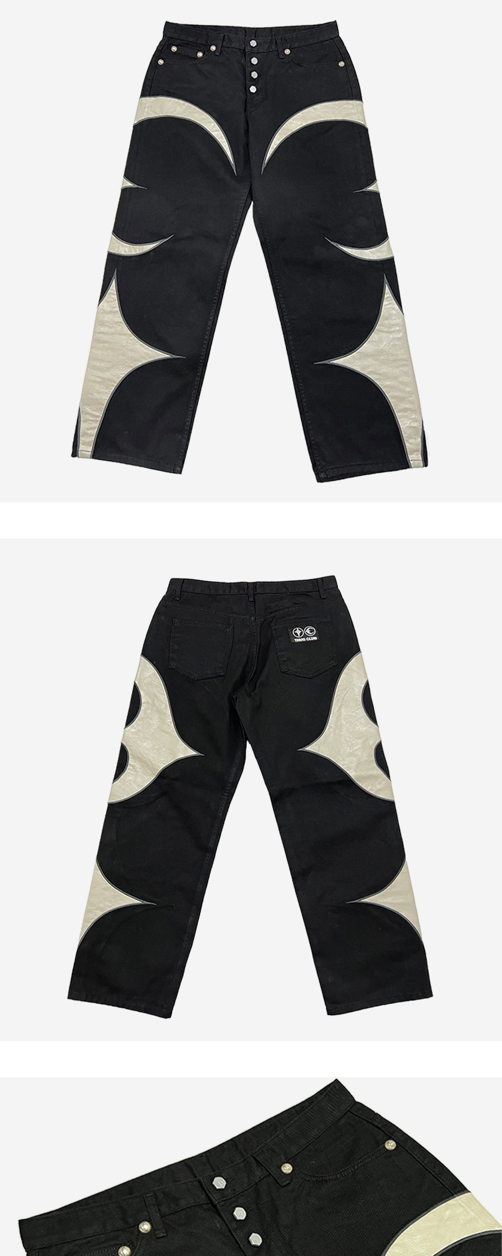 떠그 클럽 TC 레더 워싱 데님 팬츠 블랙 화이트 - 24FW