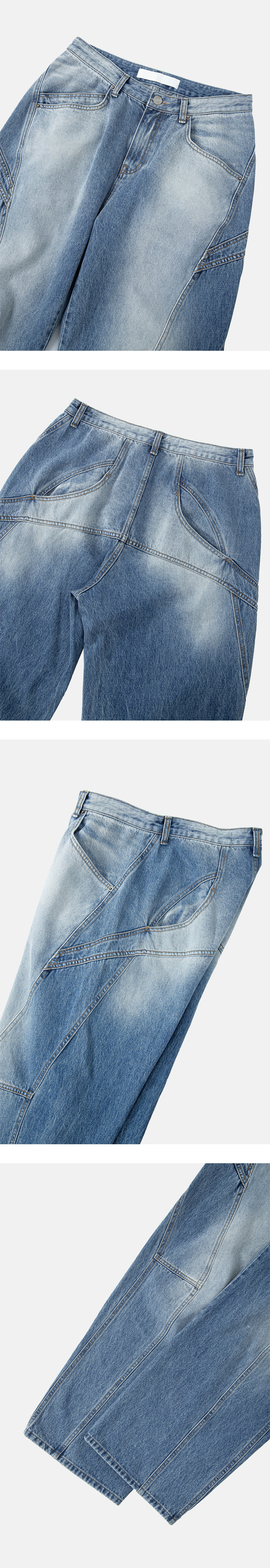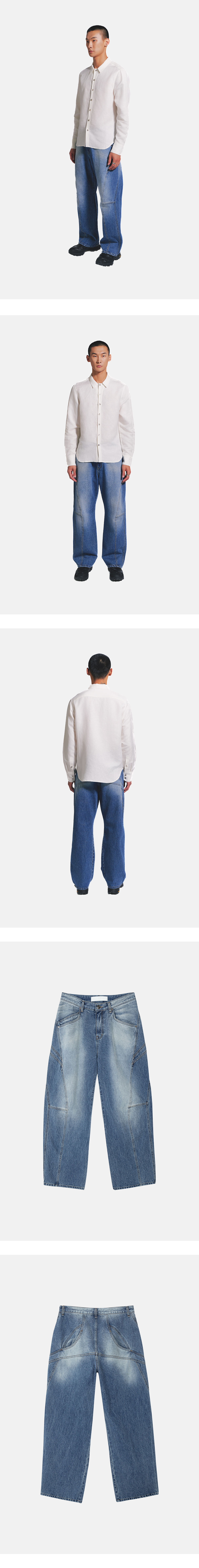 DETAILS * Vintage washed denim *13oz * Relaxed fit * YKK zip fly * Metal rivets * Five pockets * HELIX CLOTHING embossed canton button 사계절 착용 가능한 두께감의 워싱 데님입니다. 데님의 특성상 물 빠짐이 항상 존재하며, 시간이 지남에 따라 착용자의 신체에 맞춰 에이징 됩니다. 릴렉스 한 핏으로 제작되어 편안한 착용감을 제공하며 YKK 지퍼 플라이, 메탈리벳이 사용되었습니다. 무릎이 앞으로 튀어나오는 실루엣이 특징이며 뒤에서 앞으로 길게 넘어오는 곡선의 절개 디자인은 심미적인 포인트가 됩니다. The model is 182 cm tall and is wearing a size M.