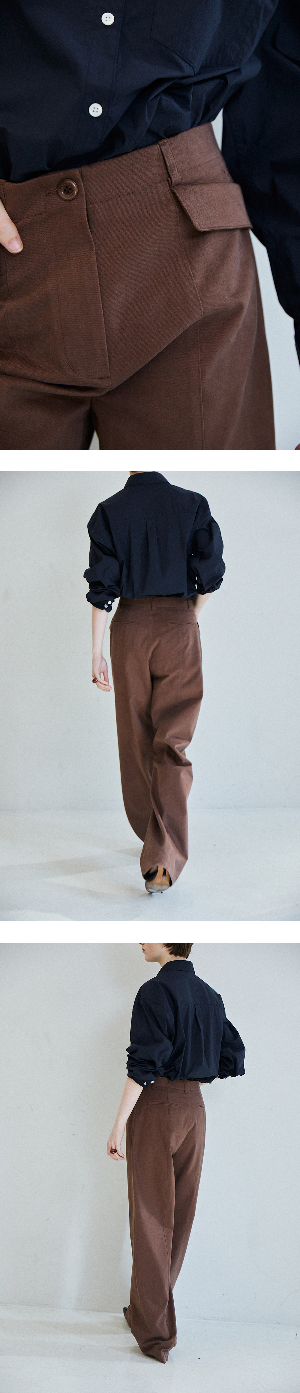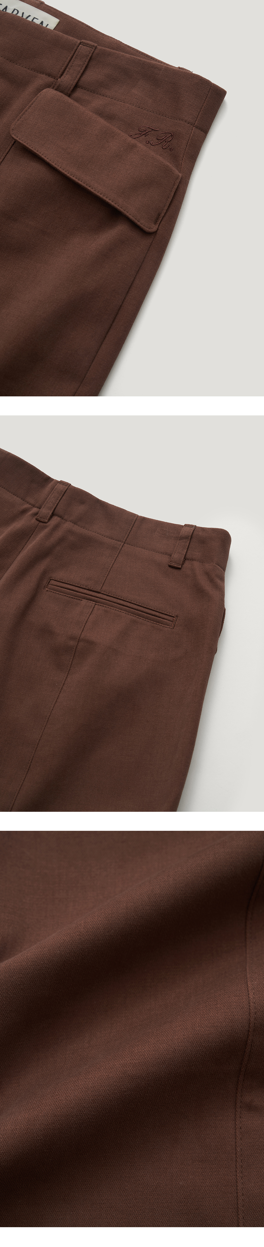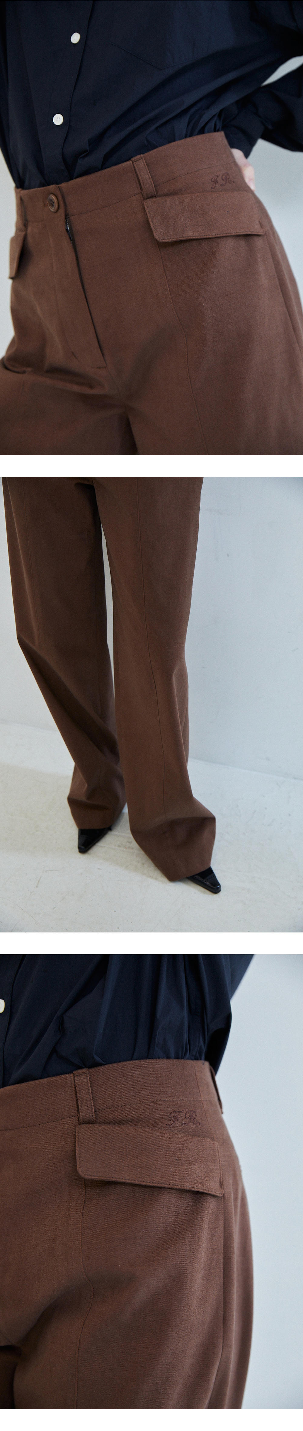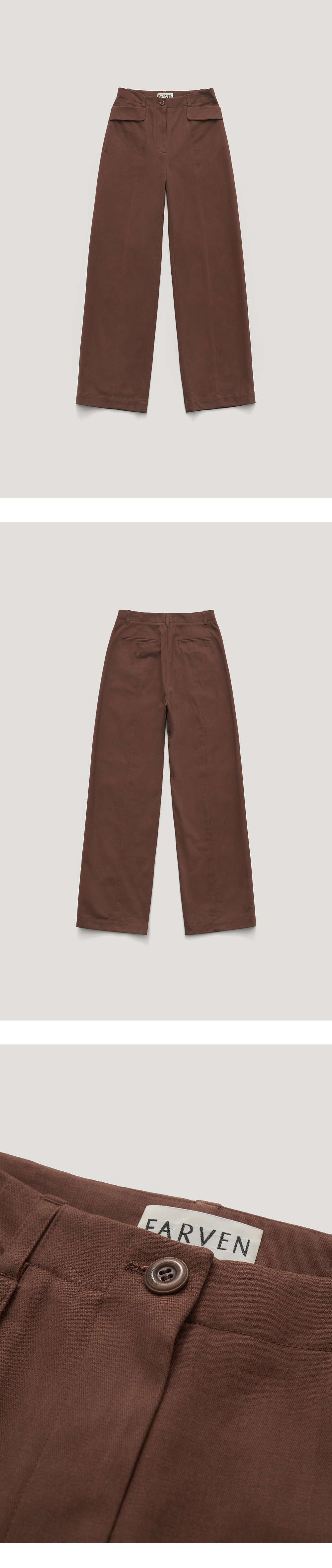[배송 안내] *해당 상품은 10/4부터 순차적으로 배송되는 상품입니다. 기모기가 올라와 있는 텍스쳐가 돋보이는 스트레이트 핏 핀턱 팬츠입니 다. 앞뒷면에 깔끔하게 잡힌 핀턱 절개 라인과 사선 플랩 포켓 디테일이 포인트이며 밑단 스티치 간격을 넓게 해 전체적인 밸런스를 맞춰주었습 니다. 같은 컬러감의 로고 각인된 너트 단추와 YKK 니켈 지퍼를 사용했 으며 플랩 포켓 위 파르벵 로고 자수 디테일로 포인트를 주어 마무리 했 습니다