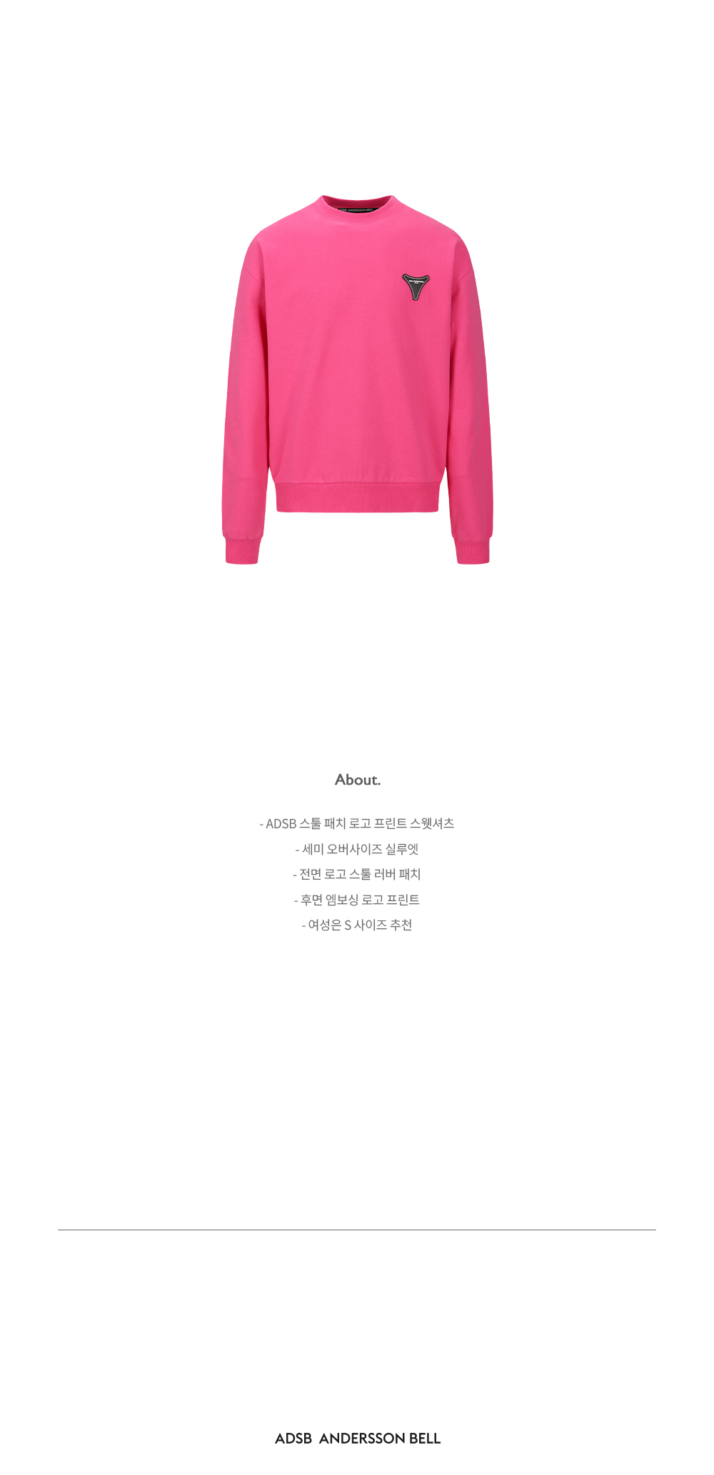 ADSB 앤더슨벨 유니섹스 스툴 패치 로고 스웨트셔츠 핑크