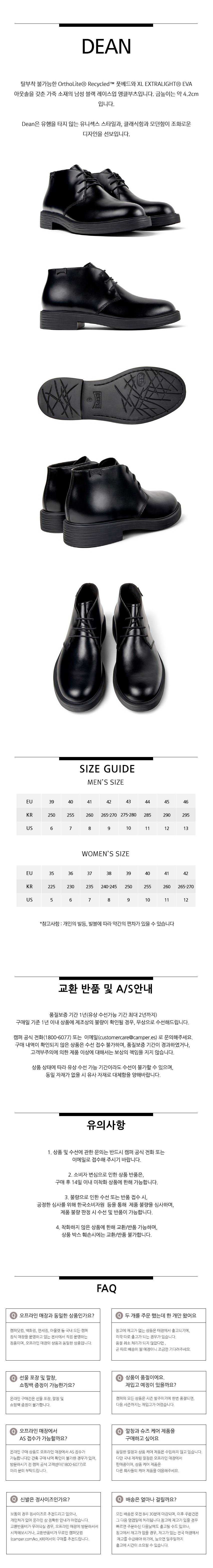 캠퍼 남성 딘 부츠 블랙