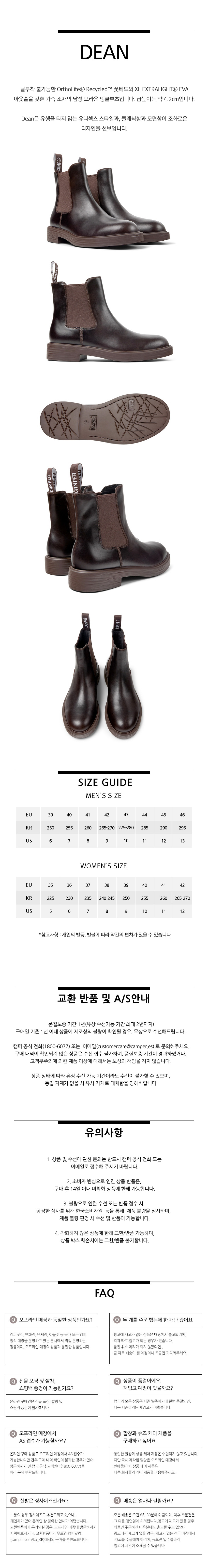 캠퍼 남성 딘 부츠 레더 브라운