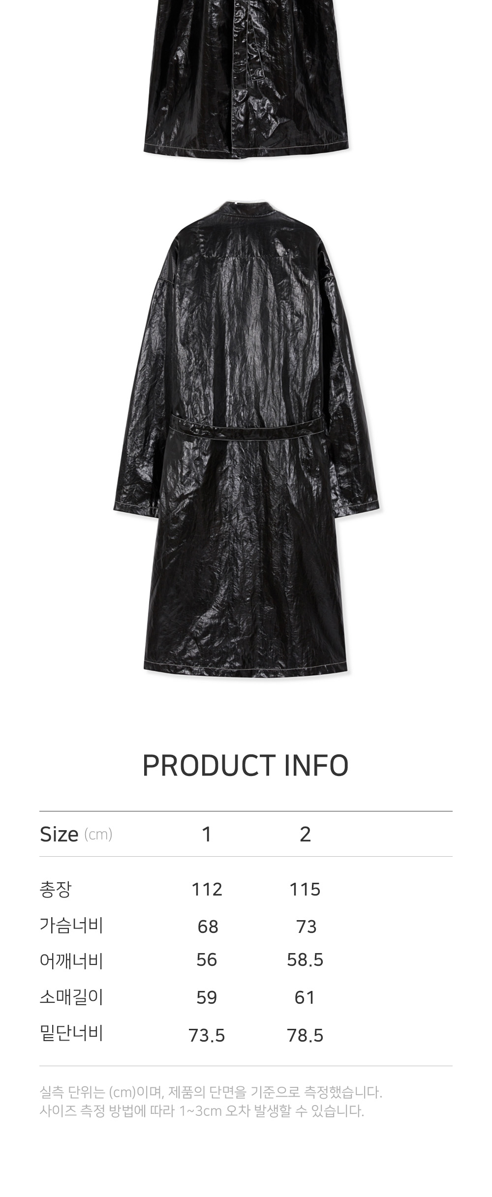 유지만의 독창적인 시그니처 아우터입니다. 넥라인의 디테일인 PVC소재를 직접 개발하여 적용한 디자인이 특징입니다. 생활 방수 및 방풍 기능으로 소재성이가진 회복탄력성이 우수하고 야외 활동 및 비가오거나 캠핑 등 레인코트지만 감각적인 레인코트로써 특수함의 기능까지 추가하였습니다. 멘즈도 착용가능한 두싸이즈로 디자인및 제작하여 남녀 공용으로 착용하실수 있습니다