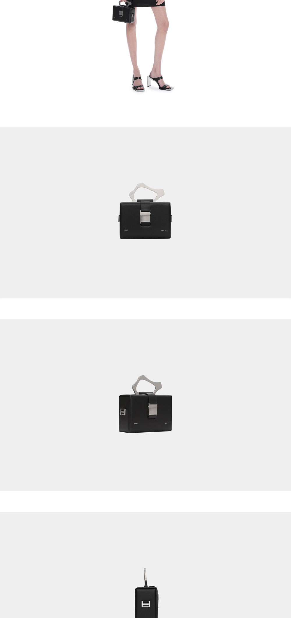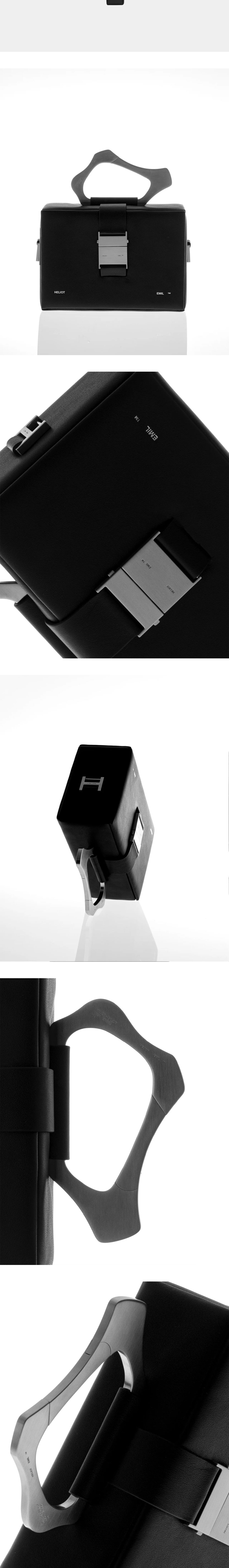 추상적인 형태의 메탈 카라비너가 특징인 엘리엇 에밀의 시그니처 박스 백입니다. - 금속 상단 핸들 - 버클 달린 가죽 스트랩 - 전면 엘리엇 에밀 메탈 로고 장식