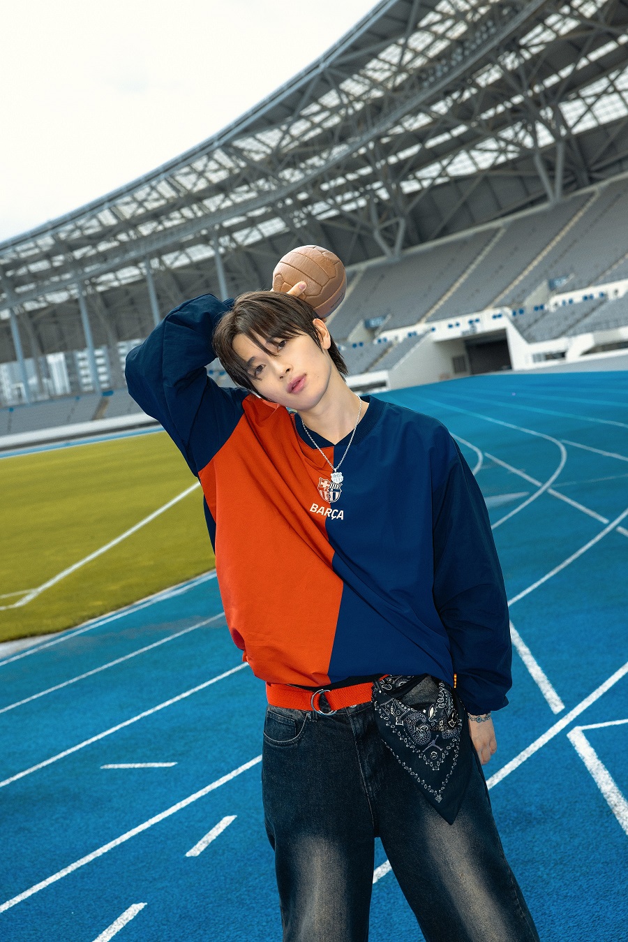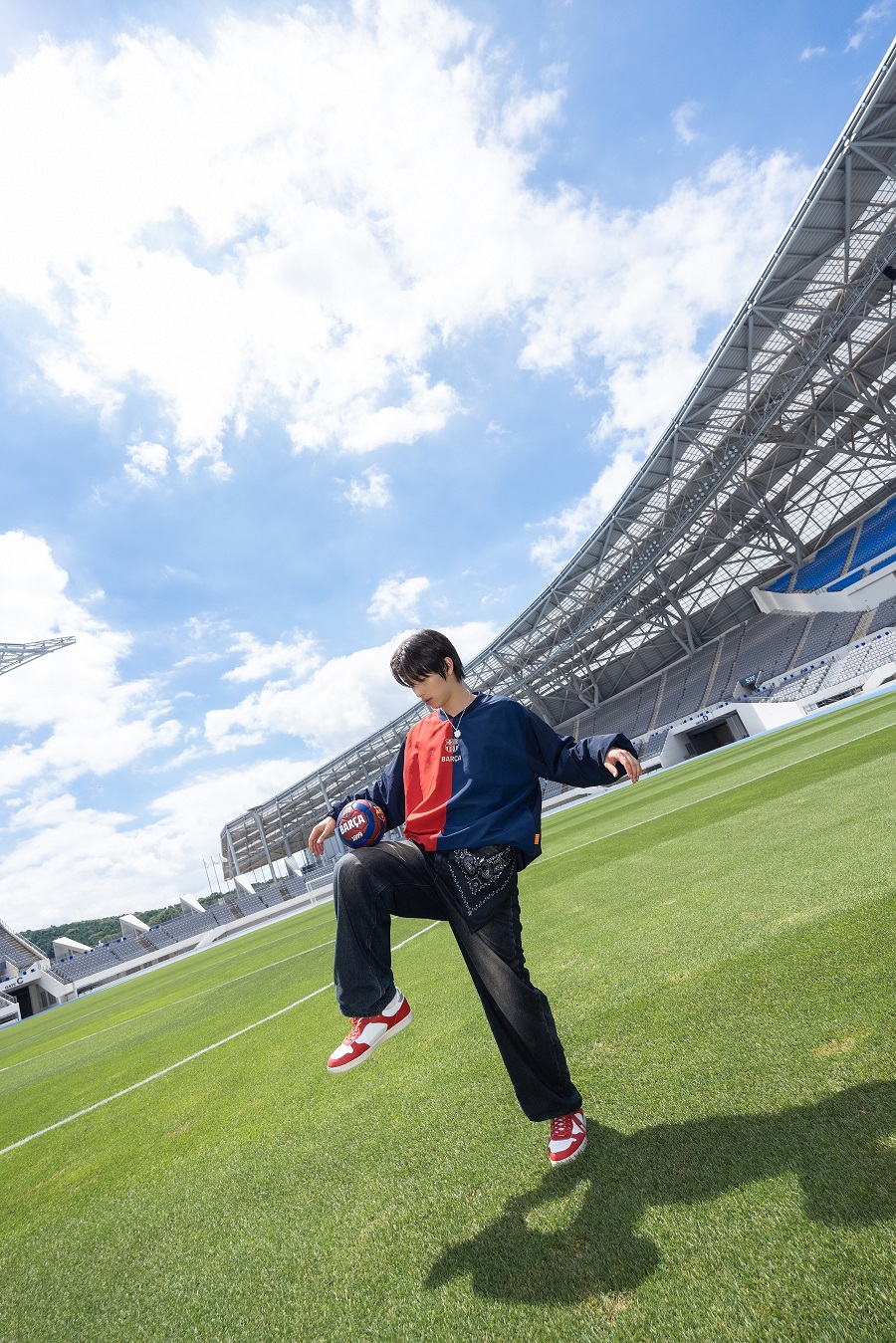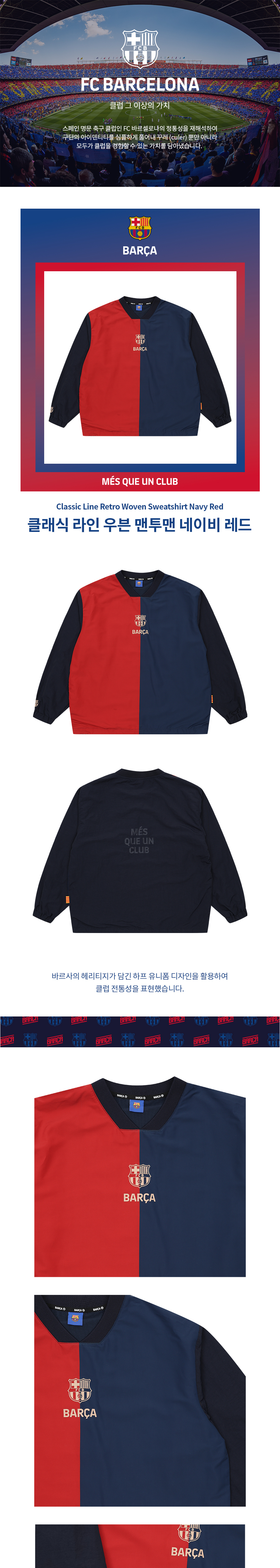 FC 바르셀로나 클래식 라인 우븐 맨투맨 네이비 레드