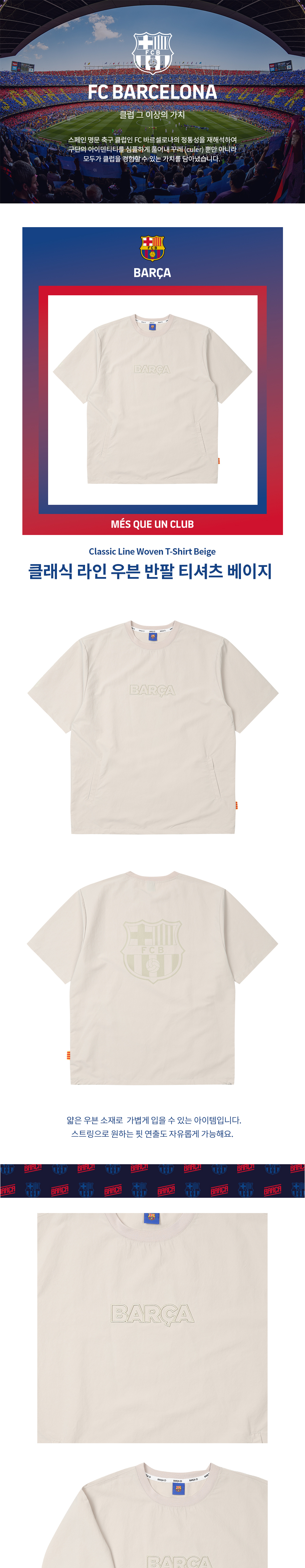 FC 바르셀로나 클래식 라인 우븐 반팔 티셔츠 베이지