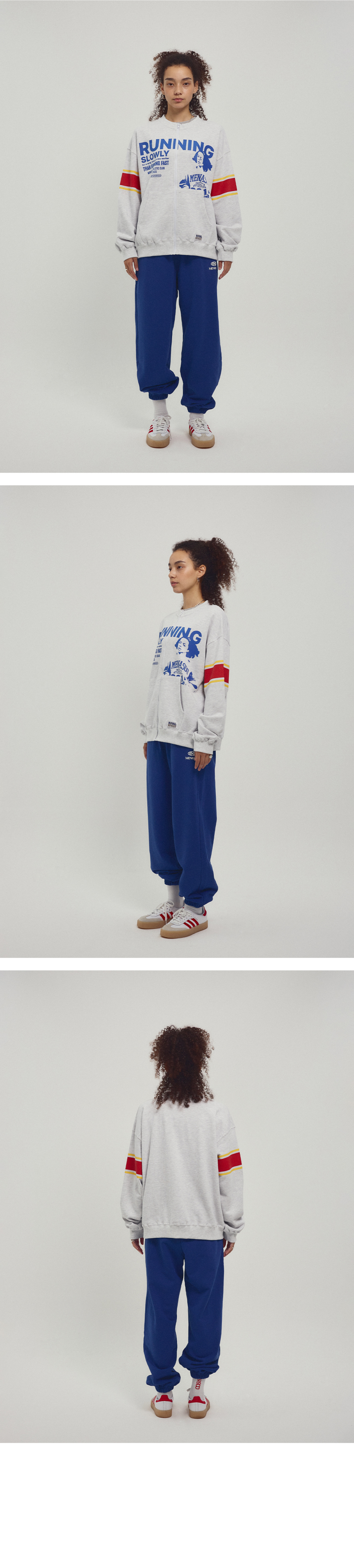 미나수 라운드넥 러닝 집업 가디건 백멜란지
