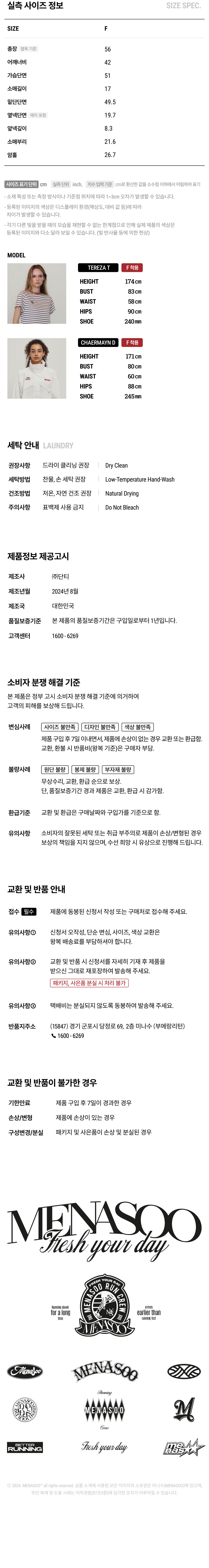 <24 F/W> MENASOO' 2024 Fall Collection. - 이용하시는 기기의 디스플레이마다 색 재현율이 다르므로, 등록된 이미지와 실물 간 색상 차이가 커 보일 수 있습니다. - 상품 단독 촬영 이미지가 비교적 실물과 유사하오나, 실제로 인식되는 색상은 주변 환경 및 광량에 따라 크게 달라 보일 수 있습니다.