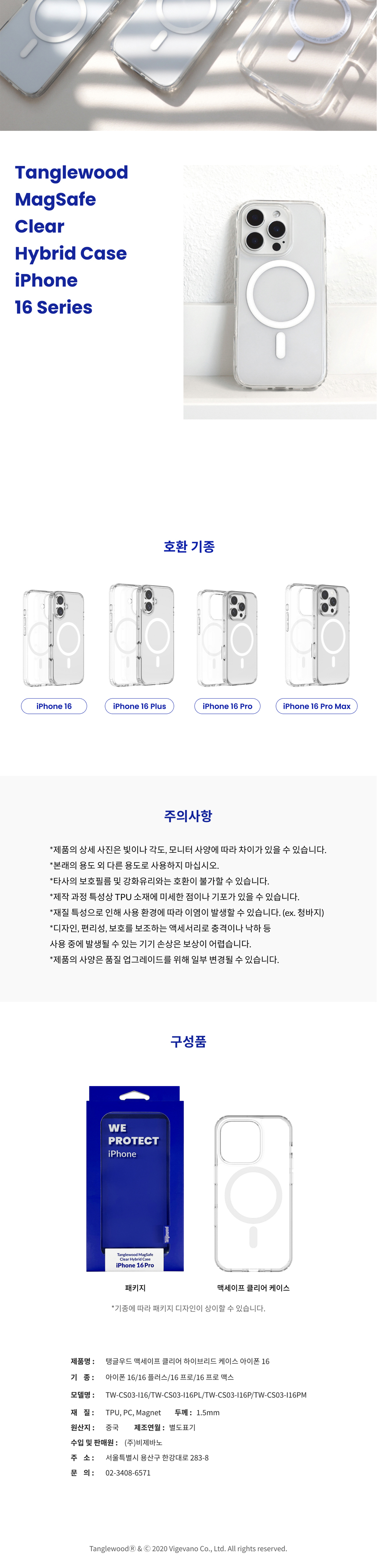 탱글우드 맥세이프 클리어 하이브리드 케이스 아이폰 16 플러스