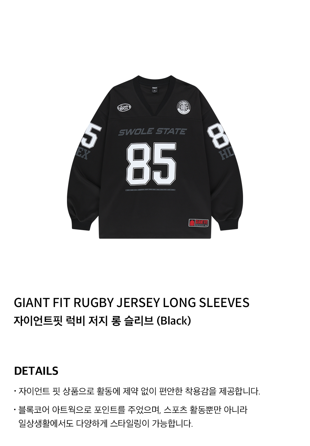 에이치덱스 자이언트핏 럭비 저지 롱 슬리브 블랙