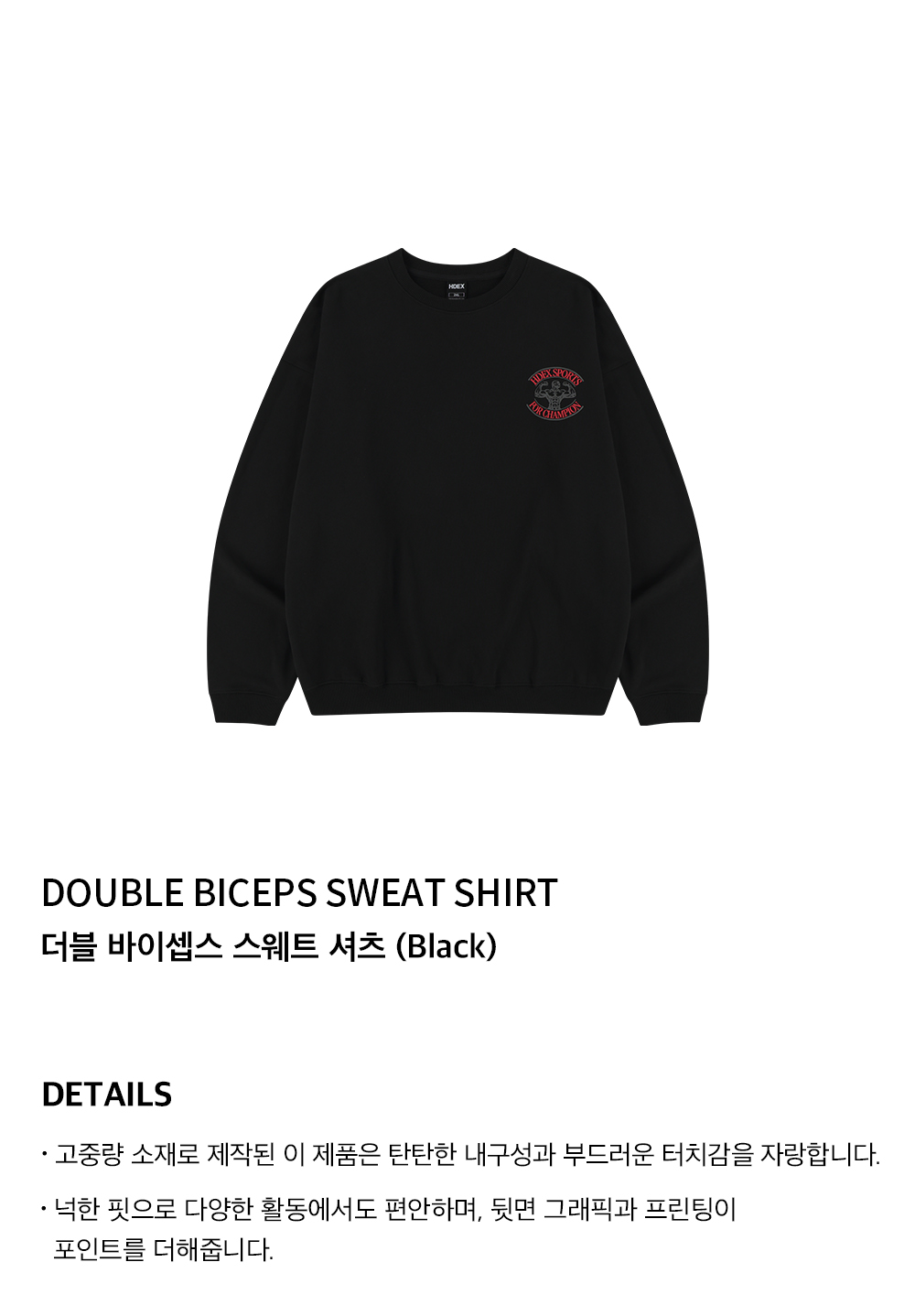 에이치덱스 더블 바이셉스 스웨트셔츠 블랙