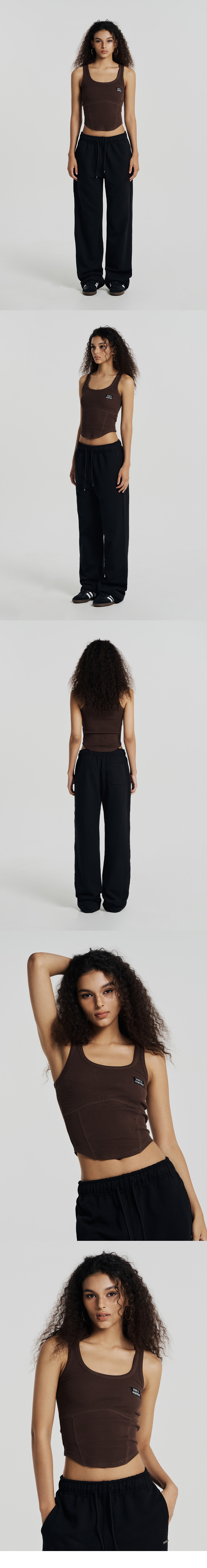 에이치덱스 우먼스 라운드 커버 스티치 탱크탑 브라운