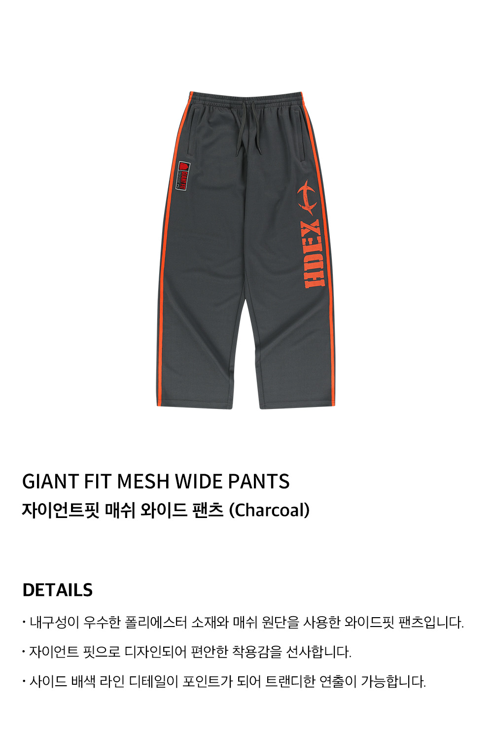 에이치덱스 자이언트핏 매쉬 와이드 팬츠 차콜