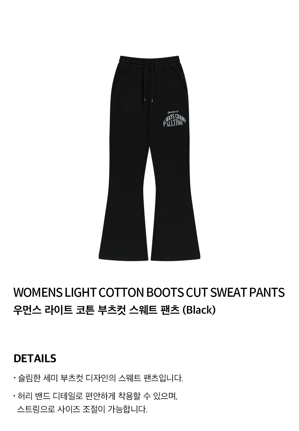 에이치덱스 우먼스 라이트 코튼 부츠컷 스웨트 팬츠 블랙