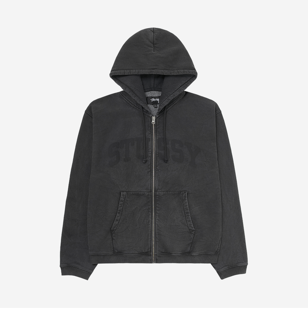 스투시 페이디드 그래픽 집 후드 워시드 블랙