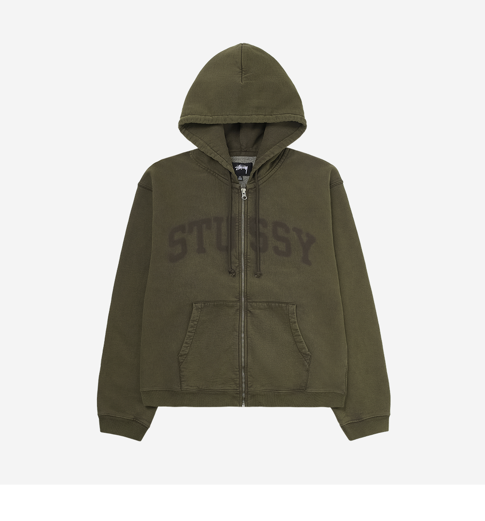 스투시 페이디드 그래픽 집 후드 올리브