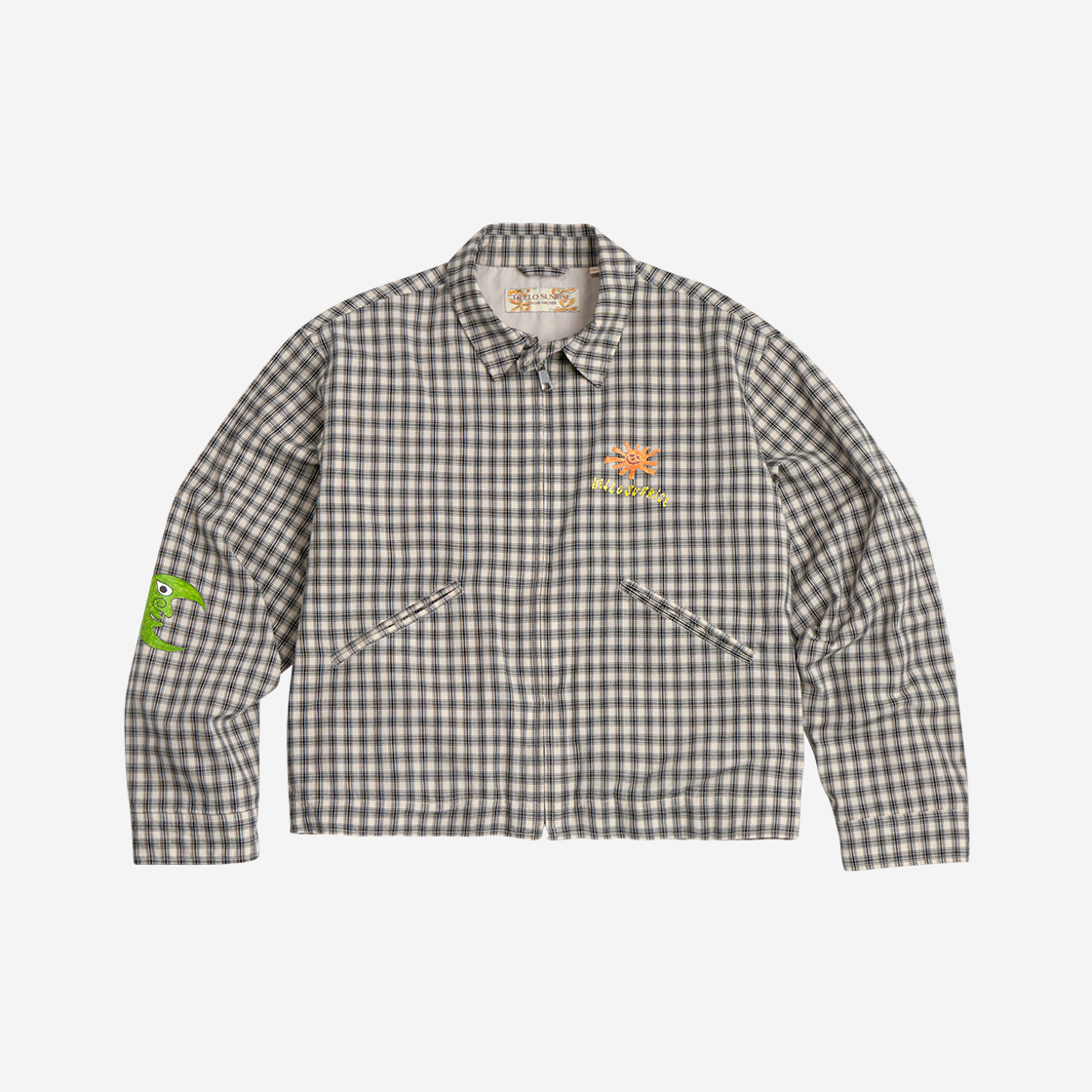Hello Sunrise x Hank Grüner 스탠다드 핏, 크롭기장의 남녀 공용의 워크 자켓입니다. - 전면 Hello Sunrise x Hank Grüner 로고 그래픽 - 소매 Hello Sunrise x Hank Grüner 달 포인트 그래픽 - 후면 Hello Sunrise x Hank Grüner 포인트 태양 그래픽 - 활용도 높은 내부 포켓, 후면 포인트 포켓 - 워싱 가공으로 빈티지한 무드 * Shell : Cotton 100% * Made in Korea