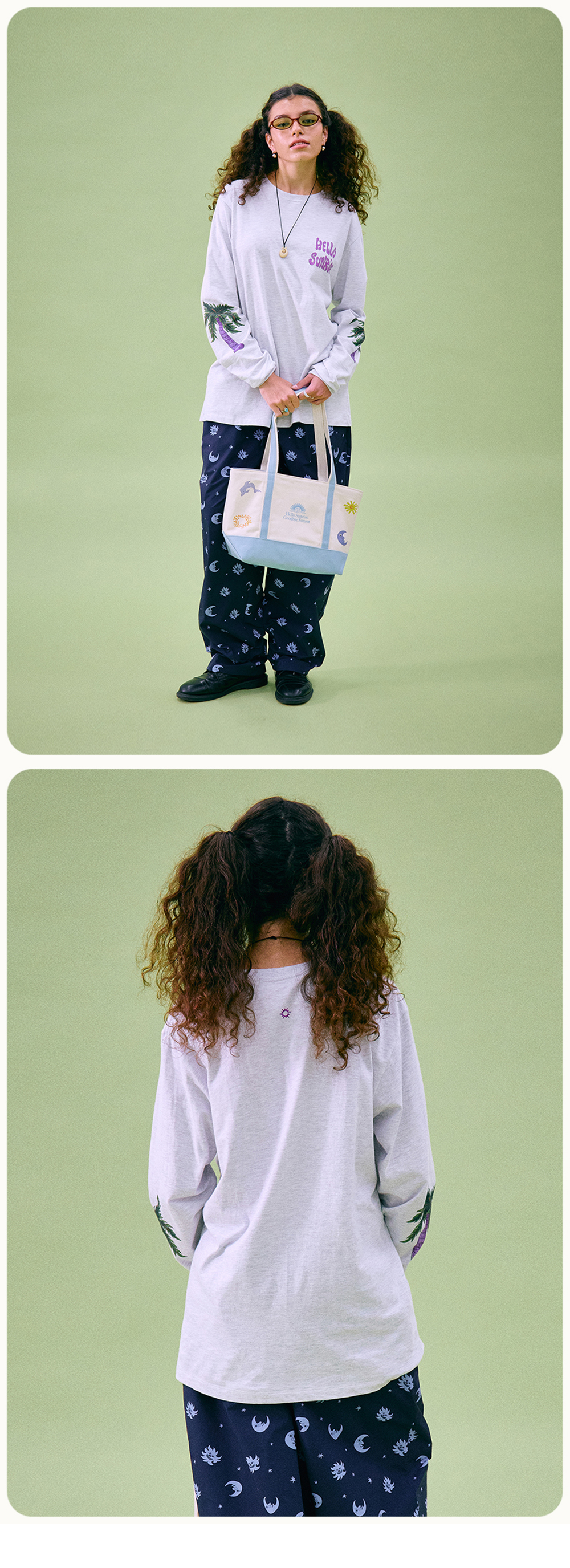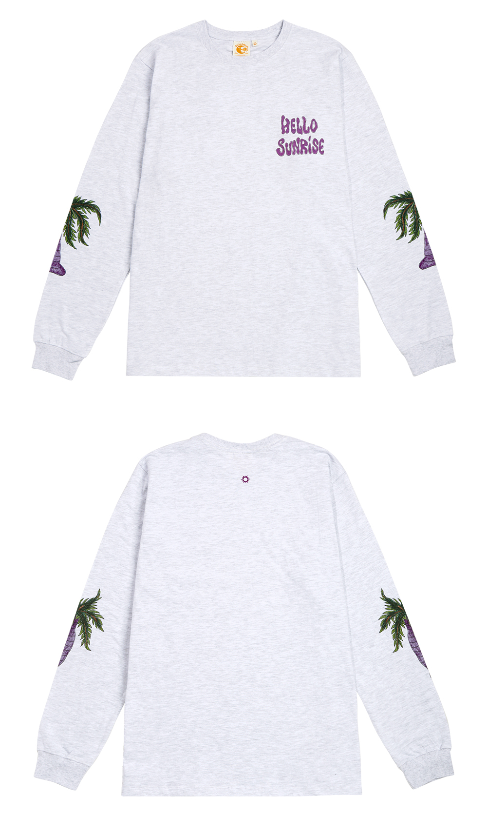 Hello Sunrise x Hank Grüner 스탠다드 핏의 남녀 공용의 긴팔 티셔츠입니다. - 전면 Hello Sunrise x Hank Grüner 타이포 로고 그래픽 - 소매 Hello Sunrise x Hank Grüner 야자수 그래픽 - 후면 헬로 선라이즈 심볼 자수 - 어깨 보강 체인스티치 진행으로 높은 내구성 - 부드러운 원단의 터치감 * Shell : Cotton 100% * Made in Korea