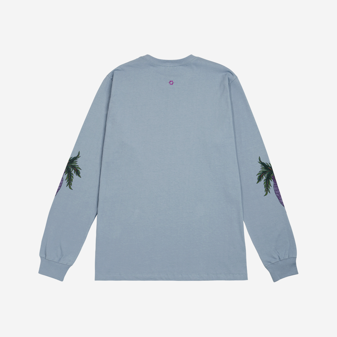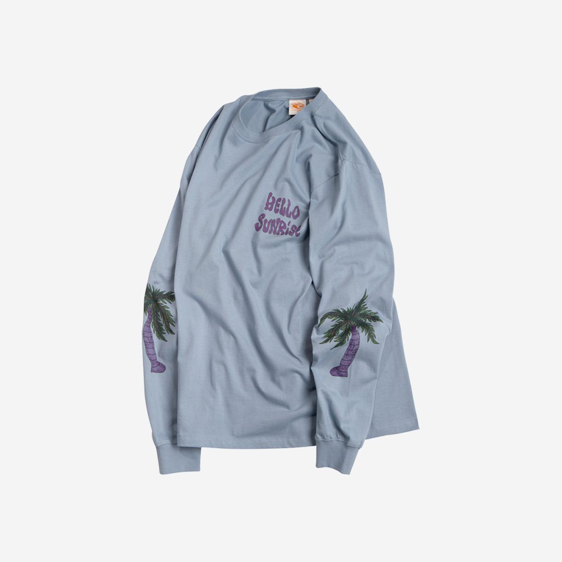 헬로선라이즈 x 행크 팜 트리 롱슬리브 티셔츠 블루 그레이