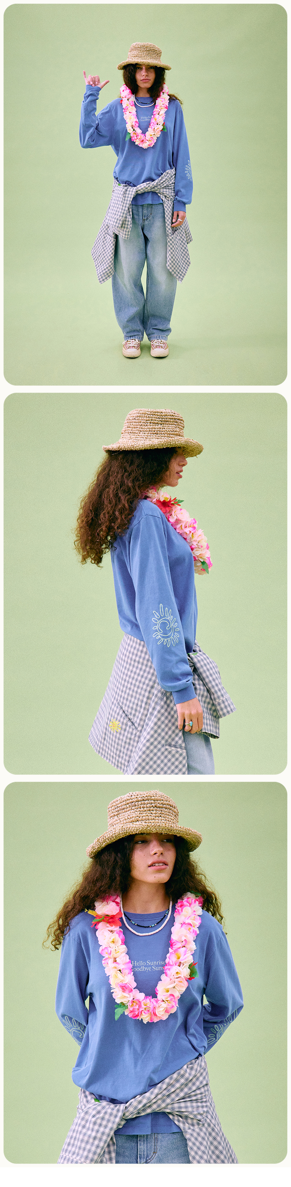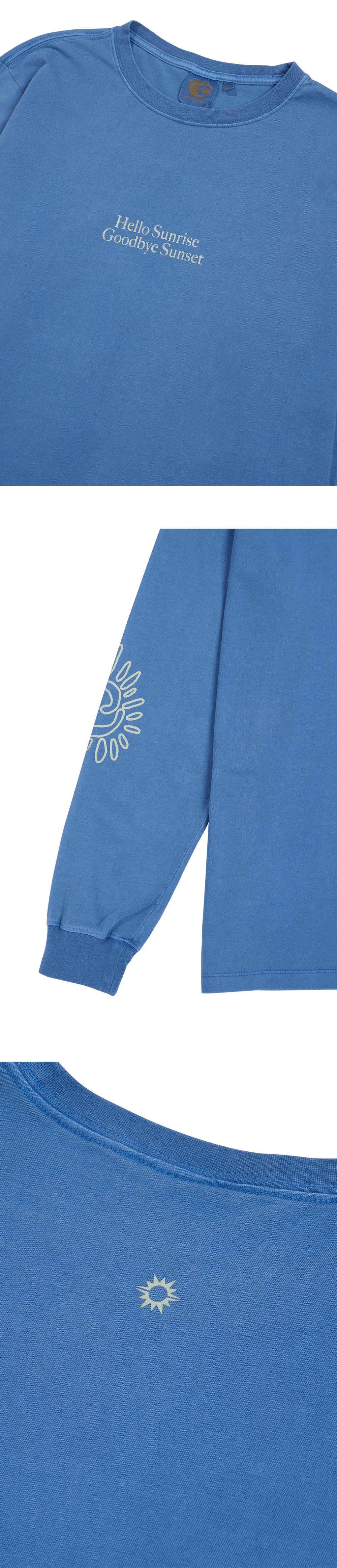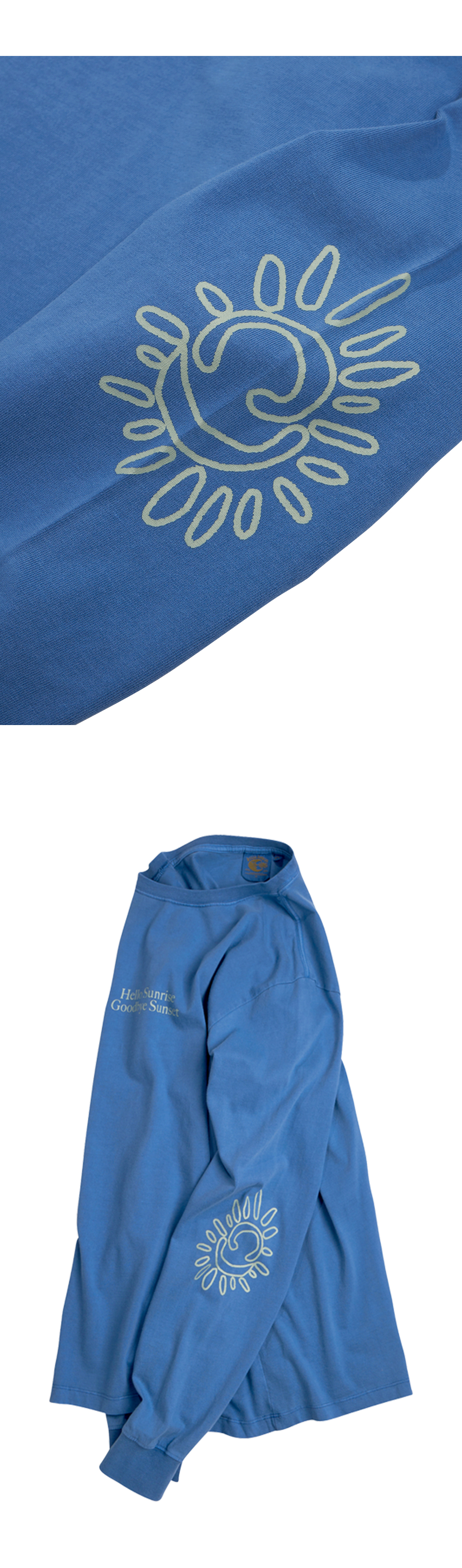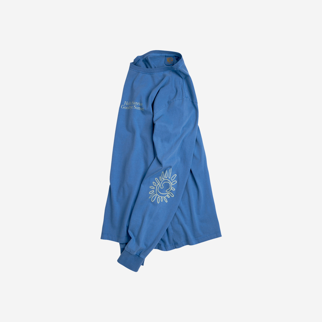 Hello Sunrise x Hank Grüner 스탠다드 핏의 남녀 공용의 긴팔 티셔츠입니다. - 전면 Hello Sunrise x Hank Grüner 헬로 선라이즈 굿바이 선셋 타이포 그래픽 - 소매 Hello Sunrise x Hank Grüner 태양 그래픽 - 후면 헬로 선라이즈 심볼 자수 - 피그먼트 다잉 기법 - 어깨 보강 체인스티치 진행으로 높은 내구성 - 부드러운 원단의 터치감 * Shell : Cotton 100% * Made in Korea