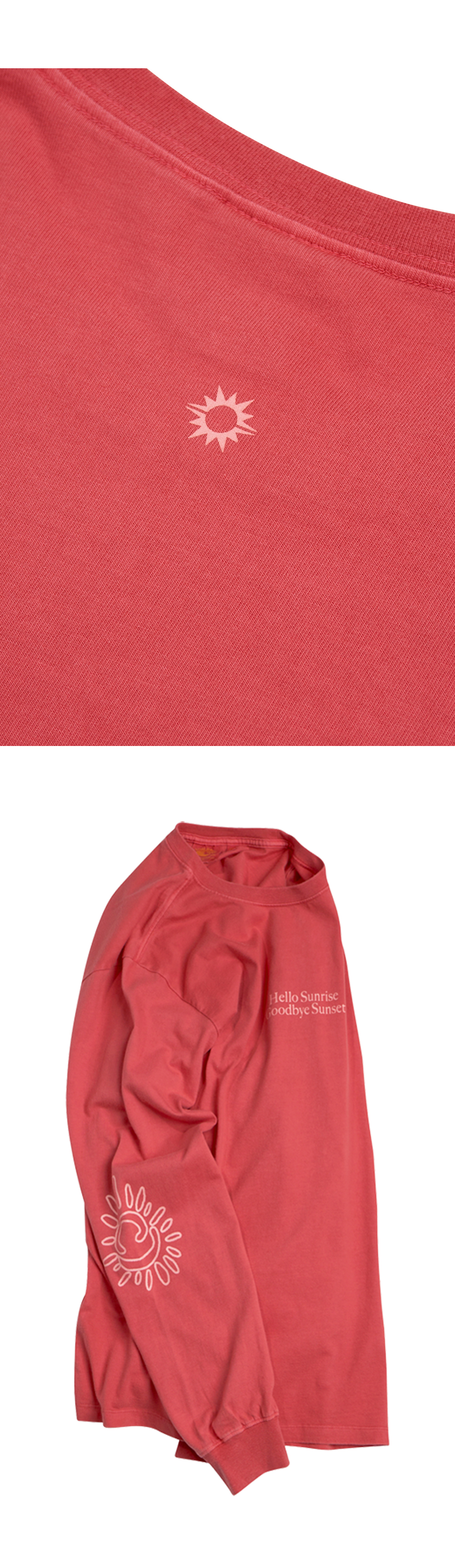 Hello Sunrise x Hank Grüner 스탠다드 핏의 남녀 공용의 긴팔 티셔츠입니다. - 전면 Hello Sunrise x Hank Grüner 헬로 선라이즈 굿바이 선셋 타이포 그래픽 - 소매 Hello Sunrise x Hank Grüner 태양 그래픽 - 후면 헬로 선라이즈 심볼 자수 - 피그먼트 다잉 기법 - 어깨 보강 체인스티치 진행으로 높은 내구성 - 부드러운 원단의 터치감 * Shell : Cotton 100% * Made in Korea
