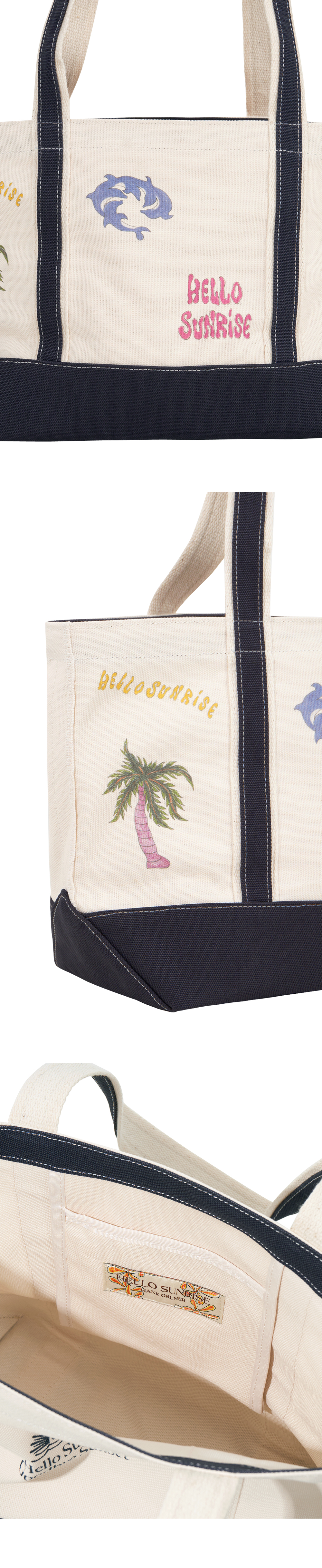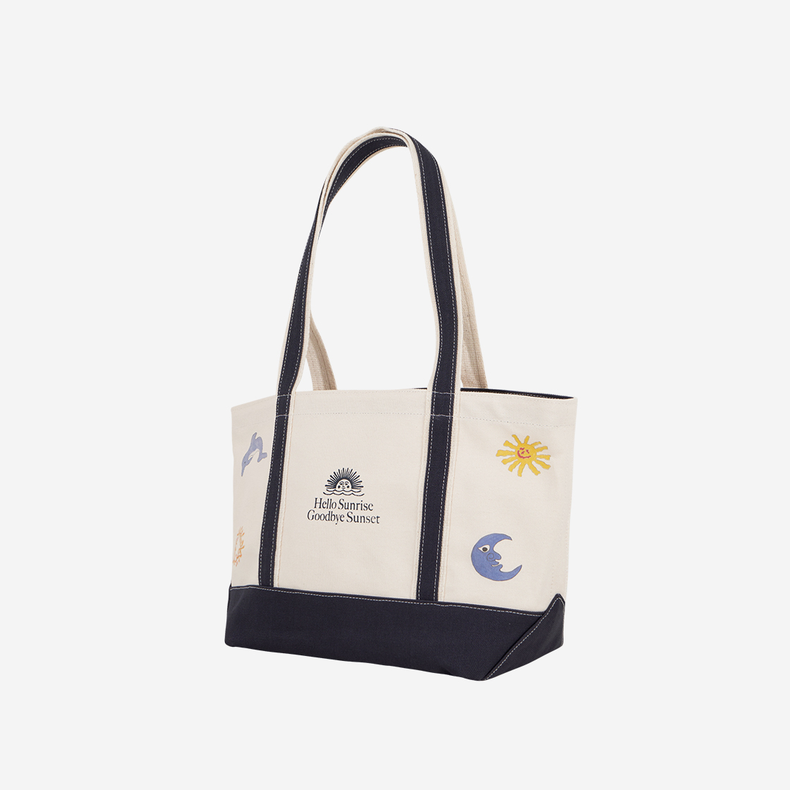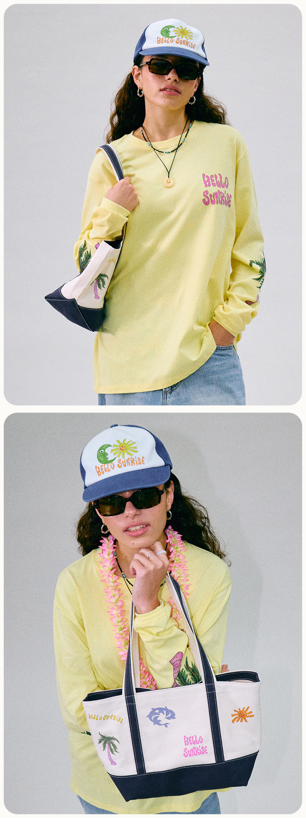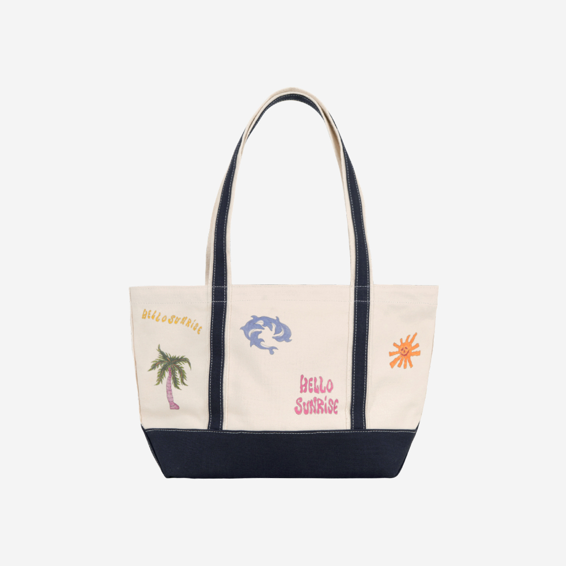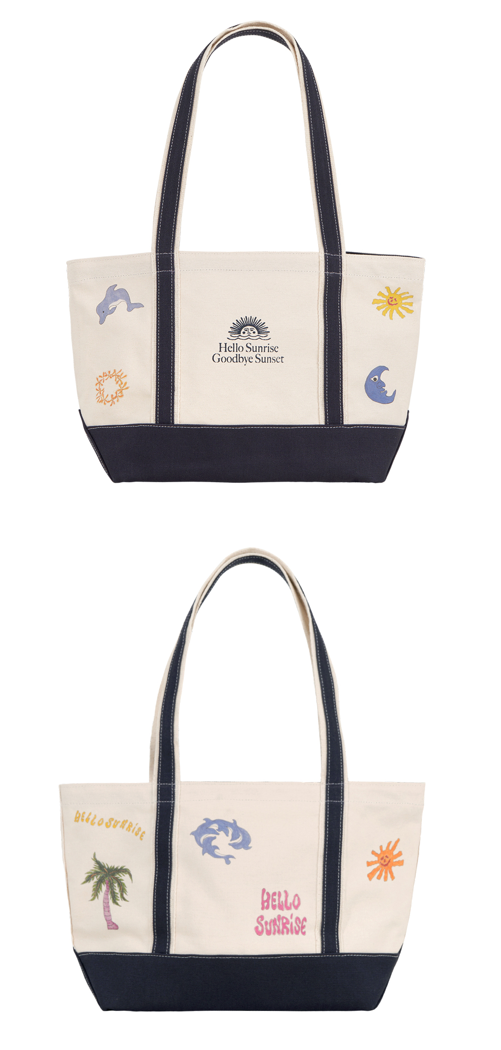 Hello Sunrise x Hank Grüner 스몰 헤비웨이트 캔버스 토트백입니다. - 10수 3합의 탄탄한 소재의 캔버스 원단 사용 - 전,후면 Hello Sunrise x Hank Grüner 그래픽 - 내부 포켓으로 높은 활용도 - 여유로운 기장감의 스트랩 * Shell : Cotton 100% * Made in Korea