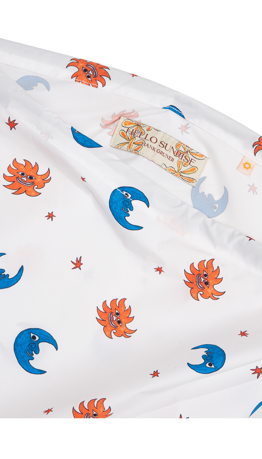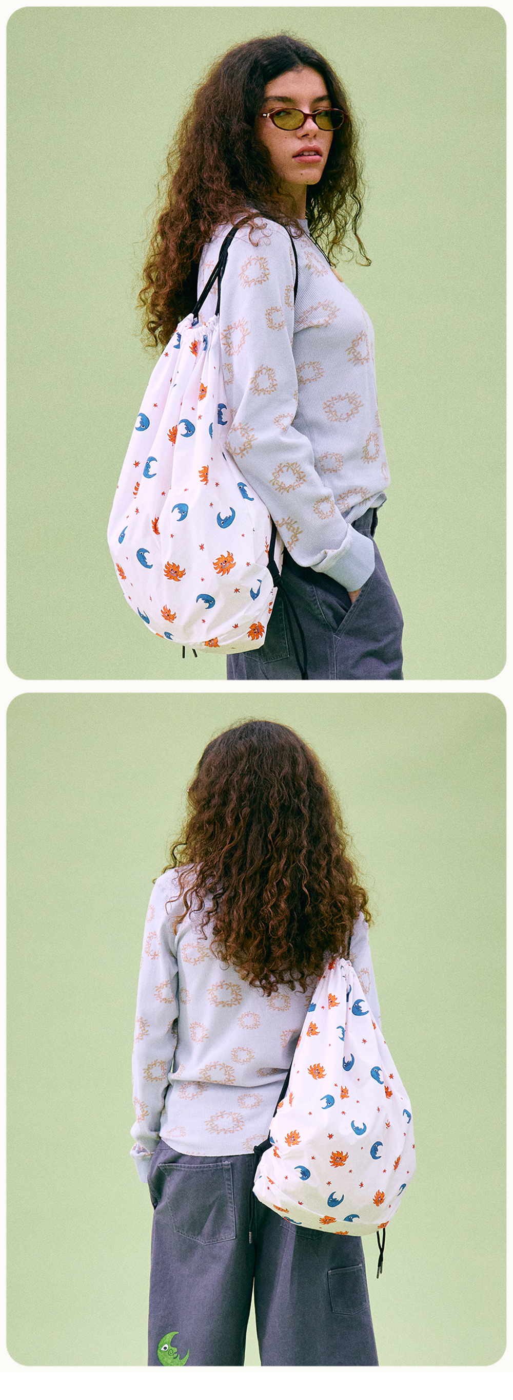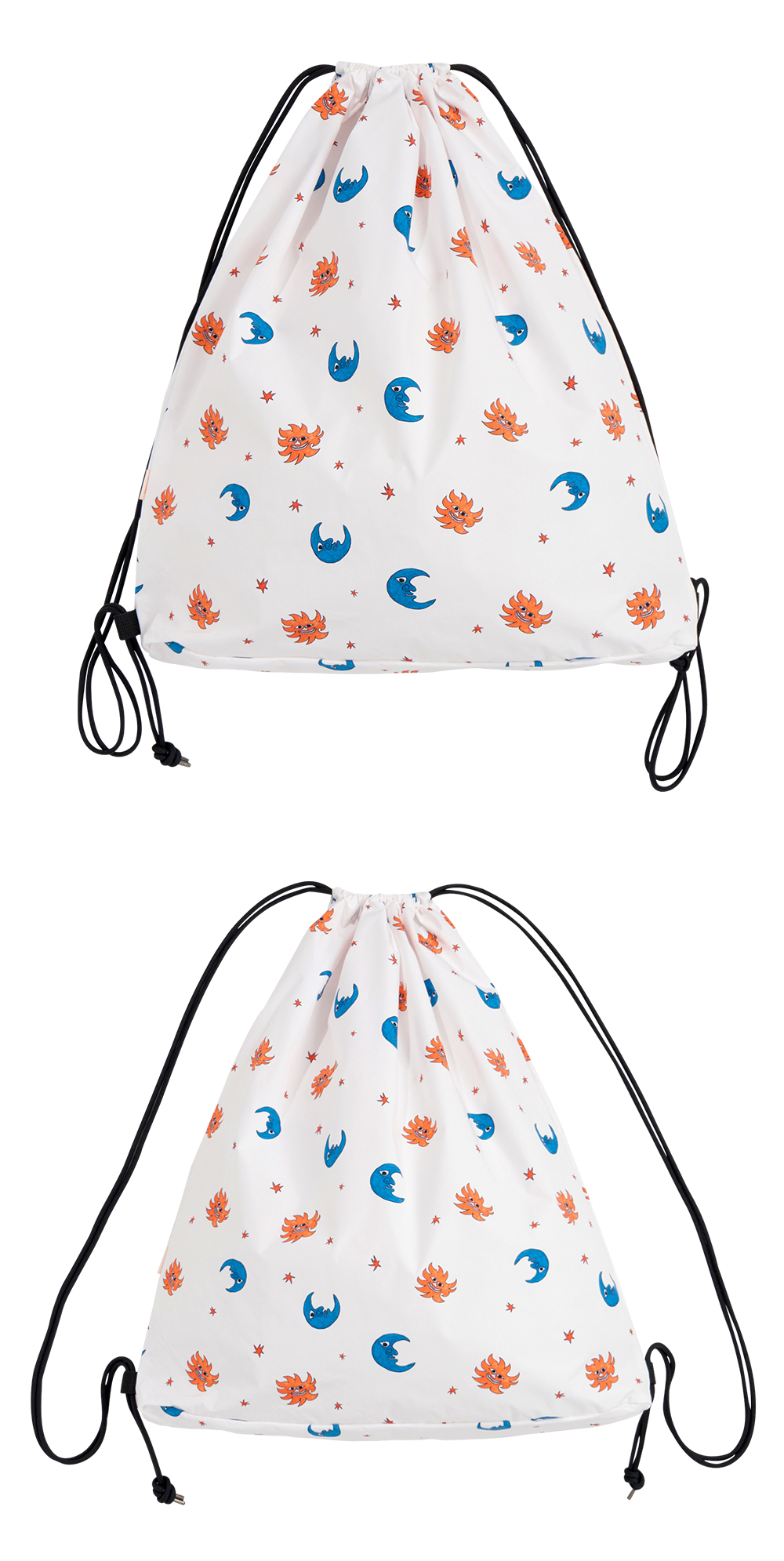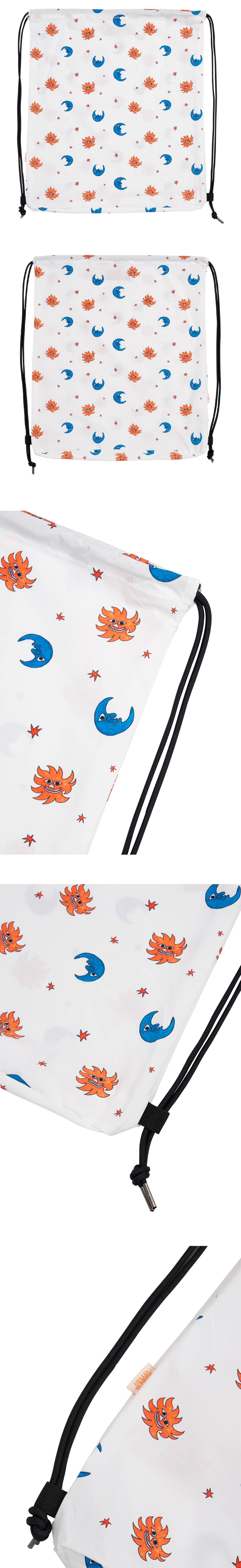 Hello Sunrise x Hank Grüner 끈 길이 조절이 가능한 스트링 백입니다. - 전면 Hello Sunrise x Hank Grüner 패턴 그래픽 - 옆면 헬로 선라이즈 포인트 라벨 - 높은 수납력 - 가벼운 소재의 원단에 풀프린팅 * Shell : Polyester 100% * Made in Korea