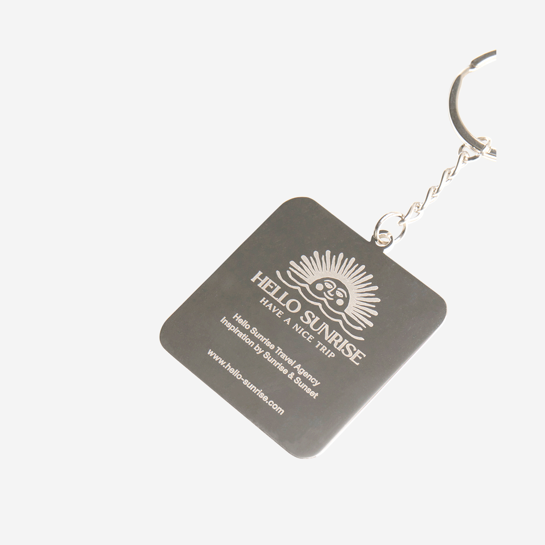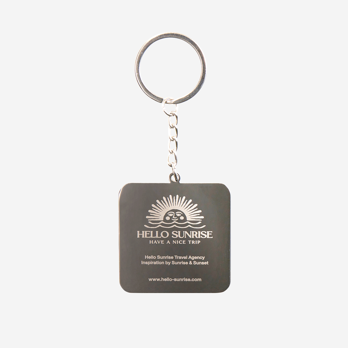 Hello Sunrise x Hank Grüner 그래픽 들어간 키링입니다. - 전면 Hello Sunrise x Hank Grüner 그래픽 에폭시 마감 - 평링으로 다양한 키링 결합 가능 - 후면 금속 Hello Sunrise 로고 및 타이포 레이져 각인 * Metal 100% * Made in Korea