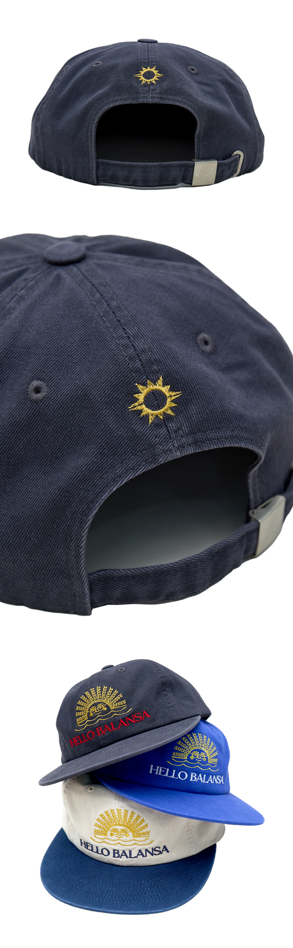 Hello Sunrise x Balansa Permed Sun 로고 그래픽이 투 톤 자수로 들어간 6panel 캡입니다. - 워싱 가공으로 빈티지한 무드 - 뒤판 Hello Sunrise 심볼 자수 처리 *모자의 챙을 개인적인 취향에 따라 원하시는 각도로 구부려 착용하시길 권장 드립니다. *가먼트 워싱 과정 상 이염이 있을 수 있으며, 이는 자연스러운 현상이므로 구매 전 참고하시기 바랍니다. * Cotton 100% Made in Korea