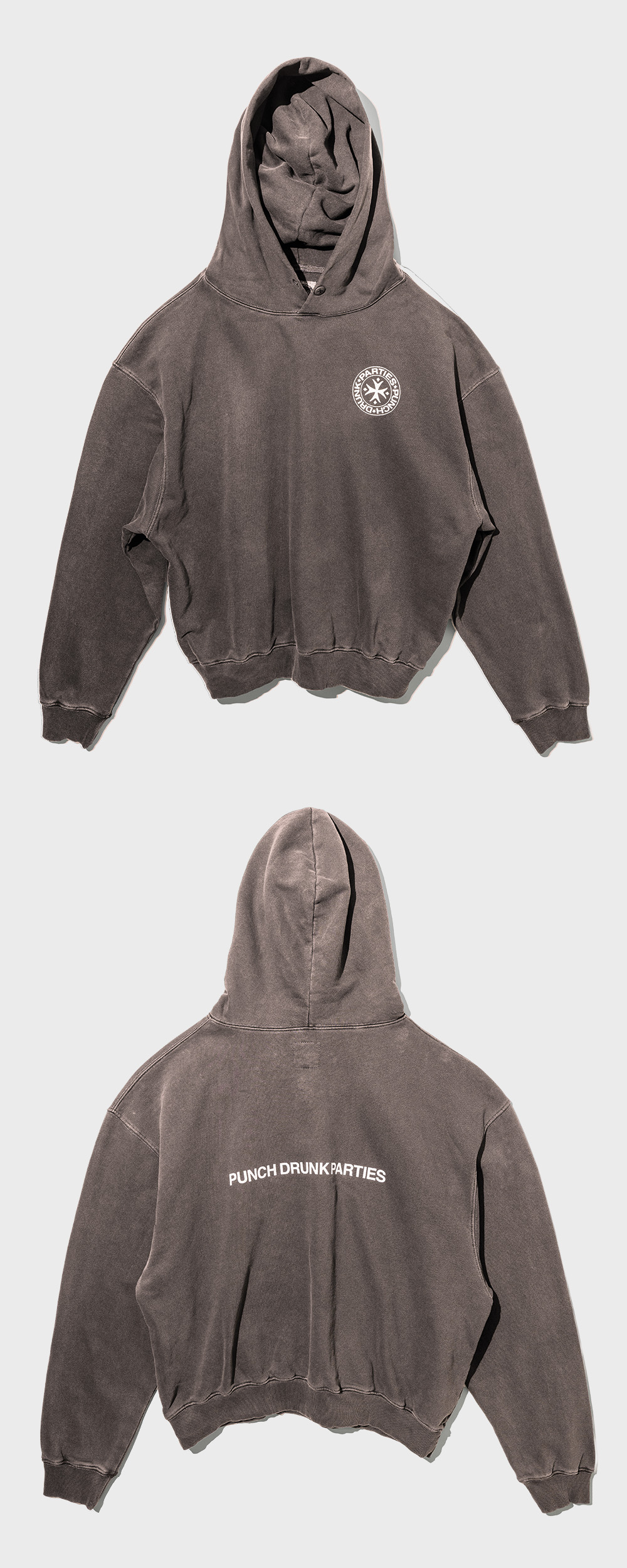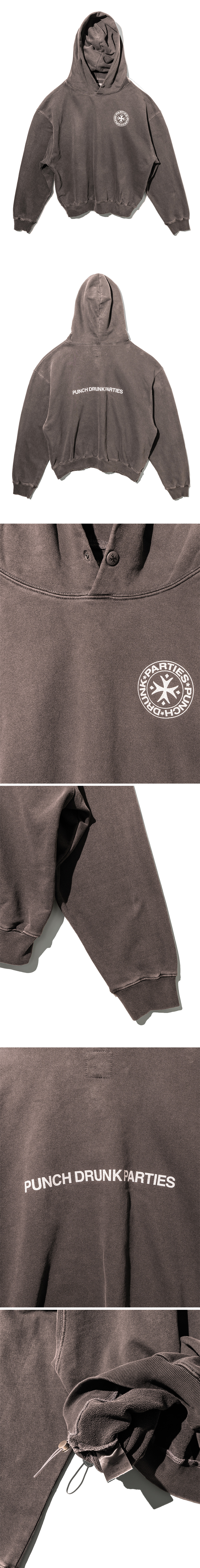 펀치 드렁크 파티즈 서클 로고 가먼트 다이드 후드 브라운