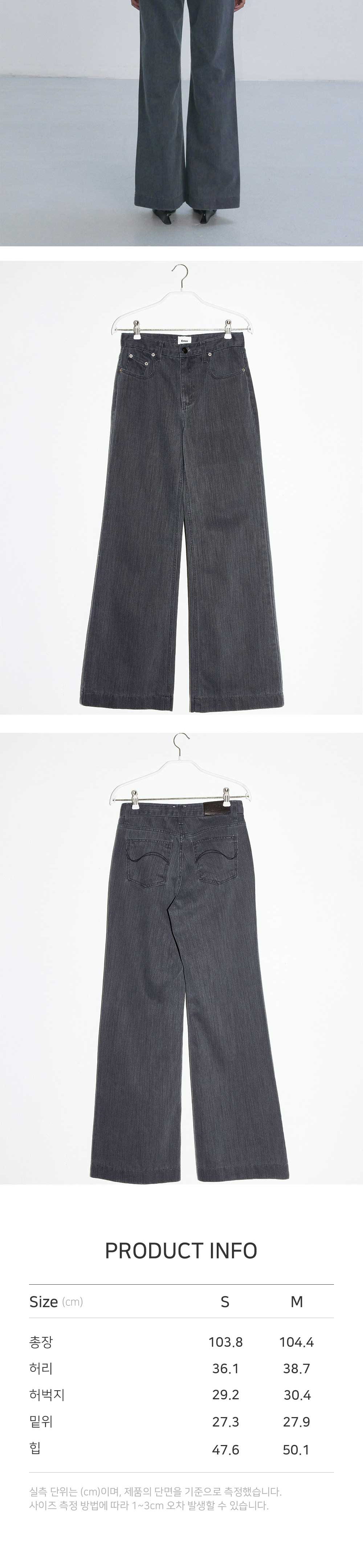 - 세미 부츠컷 데님 팬츠입니다. - 피그먼트 워싱 작업으로 빈티지한 그레이 컬러감이 돋보입니다. - 자연스러운 부츠컷 실루엣과 사계절 활용 가능한 두께감으로 편안한 착용감을 선사합니다. - 뒷 면 포켓에 엔오르 스티치 디테일과 가죽 라벨로 마무리 하였습니다.