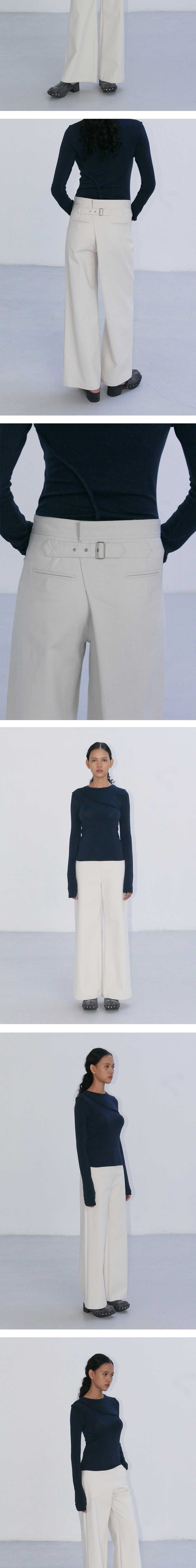 - 오버핏한 와이드 실루엣이 매력적인 팬츠입니다. - 뒷 면 비조 디테일로 큰 턱이 볼륨감 있는 실루엣을 완성 해주며 비조를 통해 사이즈 조절이 가능합니다. - 원단 표면의 피치 가공 작업을 통해 따뜻하고 부드러운 텍스처가 특징입니다. - 스판이 혼용 되어 있는 소재로 텐션감이 느껴지는 착용감이 편한 팬츠입니다. - 엔오르 켄톤과 리벳을 사용하여 완성도를 높였습니다.