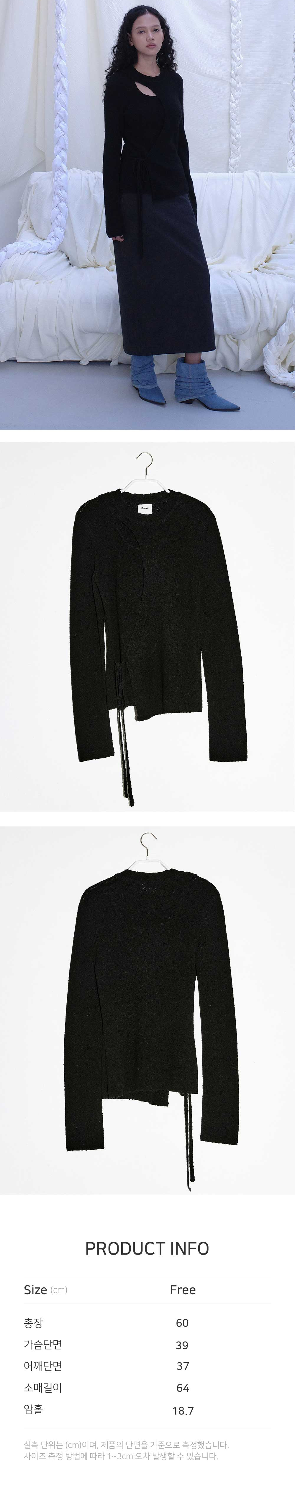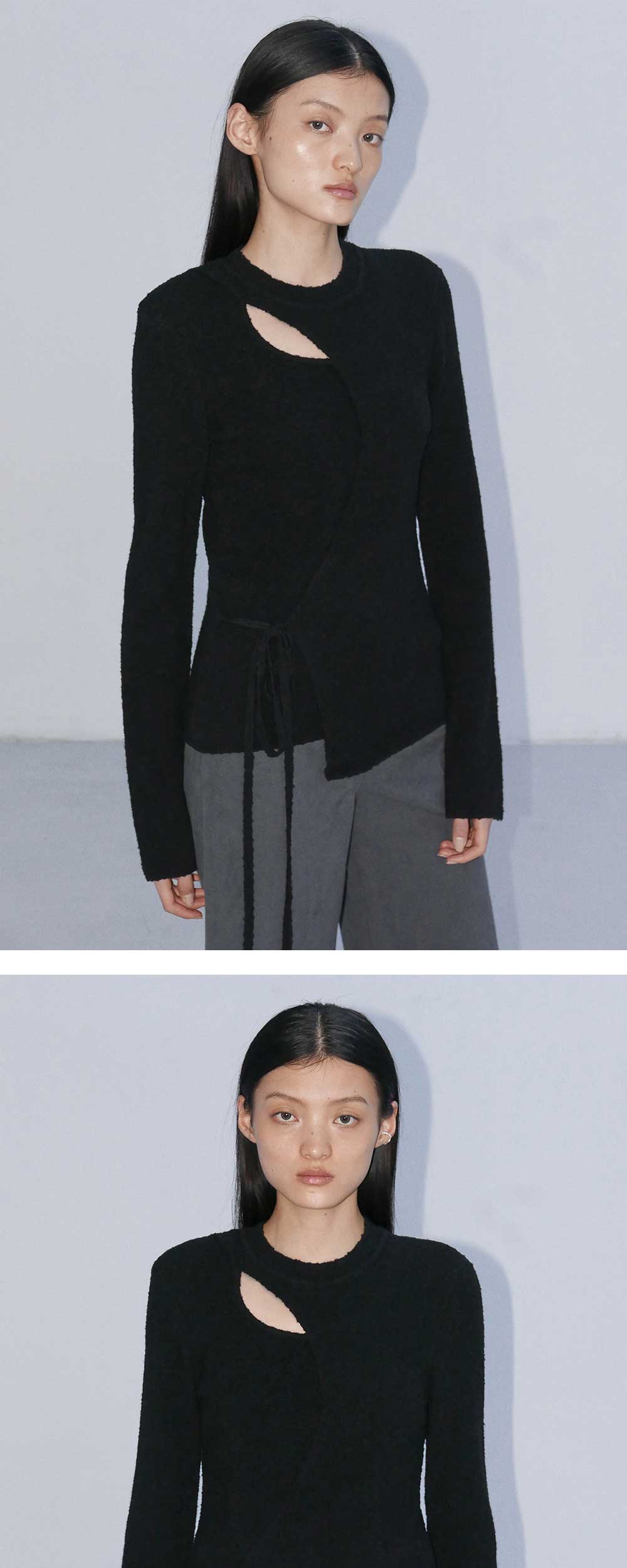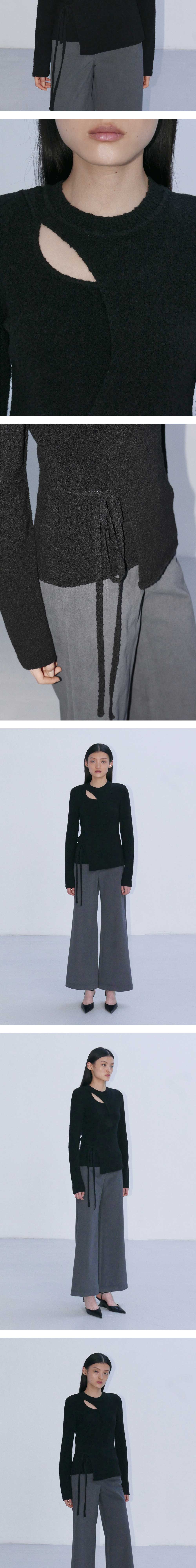 - 페미닌한 무드의 라운드넥 랩 니트입니다. - 제원사 스트링으로 매듭 디테일을 더한 랩 디자인으로 슬림한 실루엣을 연출하며 넥 라인의 컷아웃 디테일로 섬세한 무드를 선사합니다. - 울 혼용 원단으로 높은 보온성과 부드러운 터치감이 느껴지는 편안한 착용감을 선사합니다.