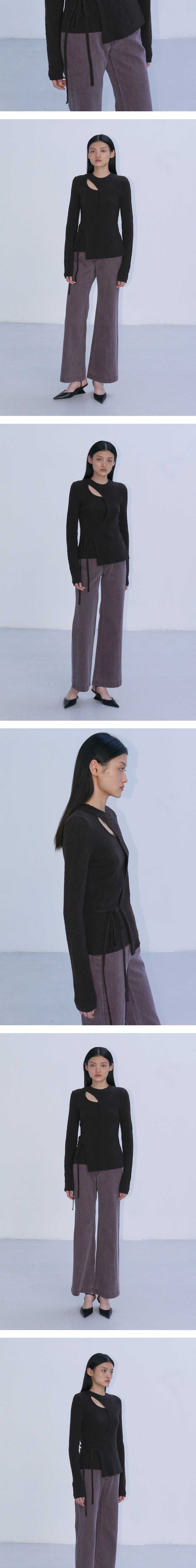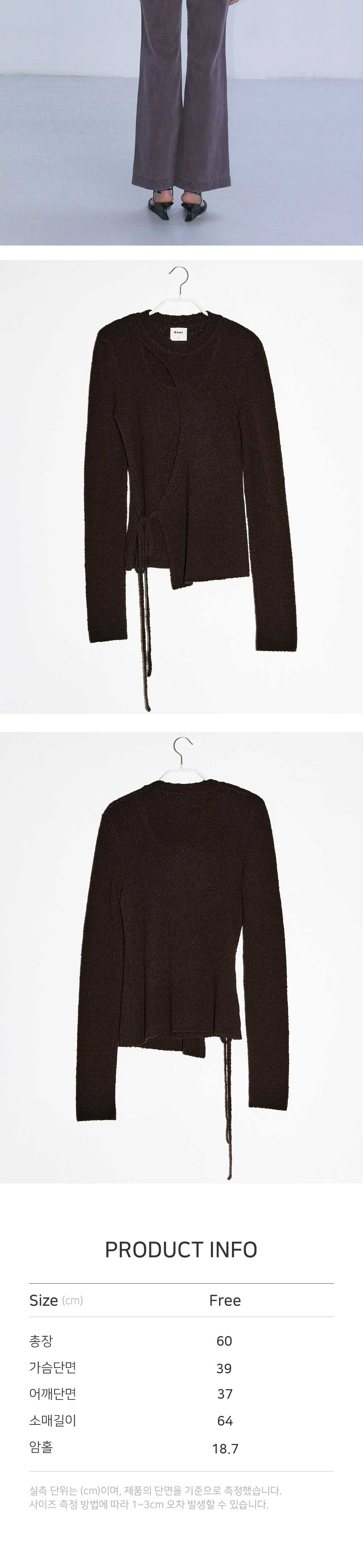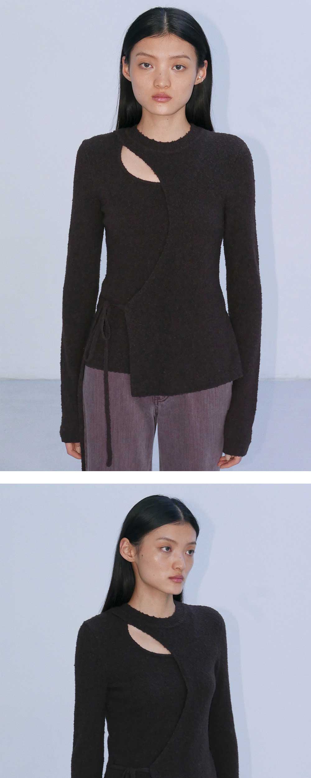 - 페미닌한 무드의 라운드넥 랩 니트입니다. - 제원사 스트링으로 매듭 디테일을 더한 랩 디자인으로 슬림한 실루엣을 연출하며 넥 라인의 컷아웃 디테일로 섬세한 무드를 선사합니다. - 울 혼용 원단으로 높은 보온성과 부드러운 터치감이 느껴지는 편안한 착용감을 선사합니다.