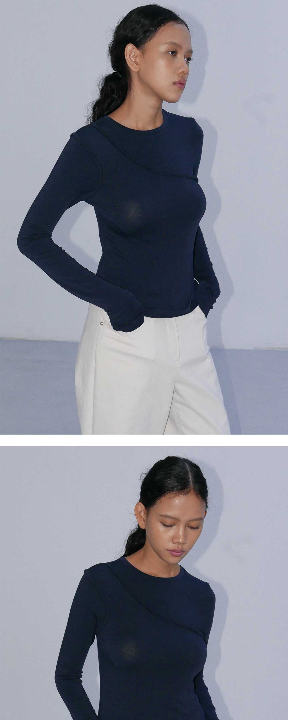 - 전체적으로 슬림한 핏과 미니멀한 디자인에 가슴 부분에 곡선의 절개 라인 디테일을 넣어 포인트를 더한 롱 티셔츠입니다. - 단품 혹은 이너로 다양하게 연출하기 좋은 아이템입니다. - 스판이 혼용되어 우수한 탄력성과 가볍고 소프트한 텍스처감으로 편안한 착용감을 선사합니다.