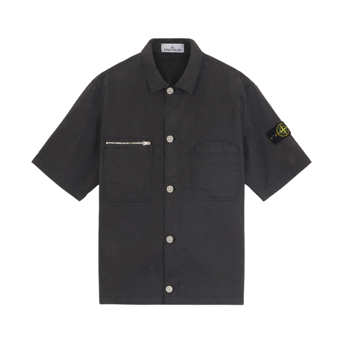 Stone Island 12410 Supima Cotton Twill Stretch TC S/S Overshirt with Buttons Black - 24FW
