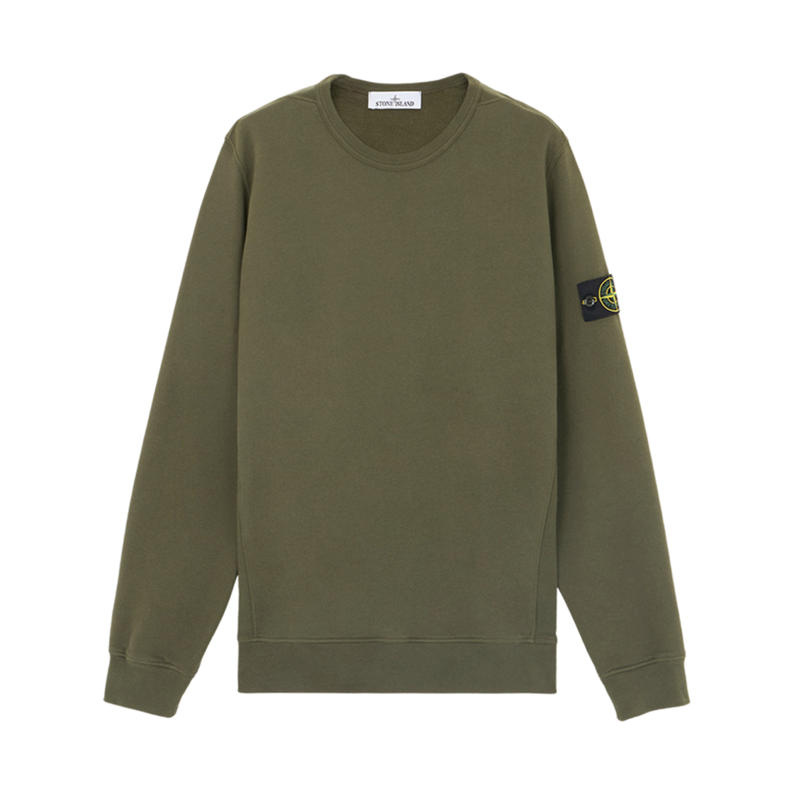 Stone Island 62420 Brushed Organic Cotton Fleece Crewneck Sweatshirt with Ribbing Musk Green - 24FW