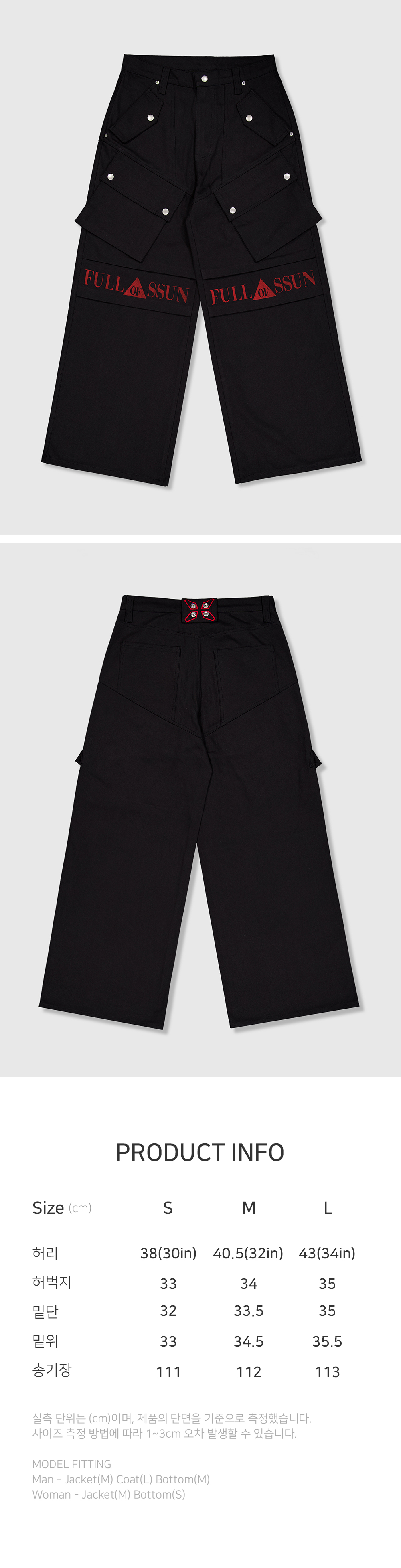 주문 후 1~2일 후 순차 발송됩니다 (주말, 공휴일 제외) - 입체포켓 디테일 - 무릎 Ghost in the shell 로고 프린팅 - YKK사의 바지지퍼 및 부자재(리벳, 캔톤) - 뒤판 허리밴드 플러그 자수로고 디테일