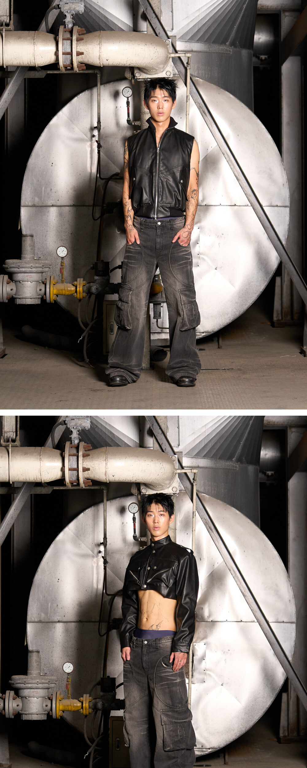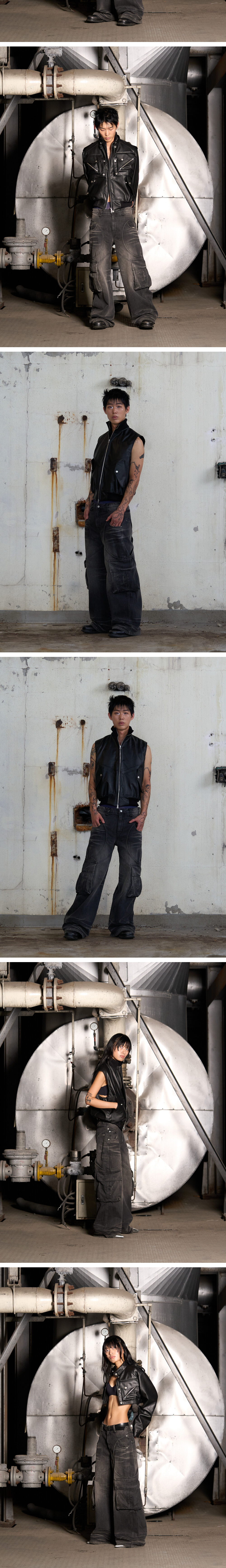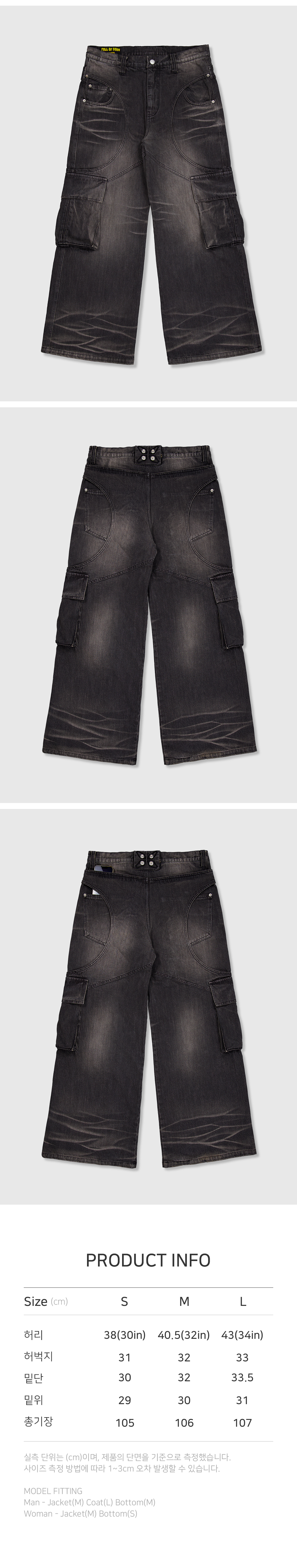 풀오브썬 써클 워싱 데님 카고 팬츠 블랙