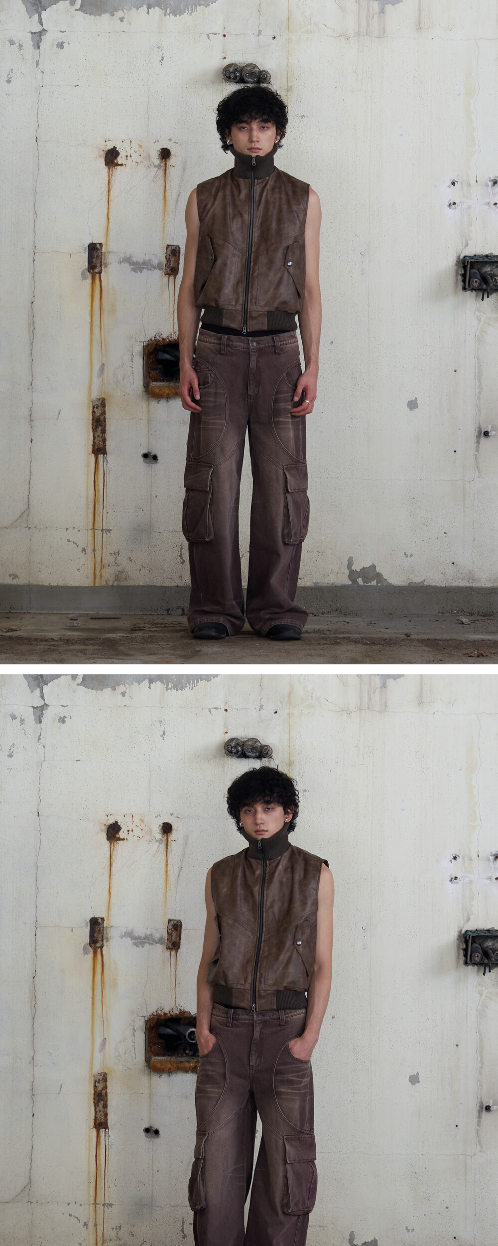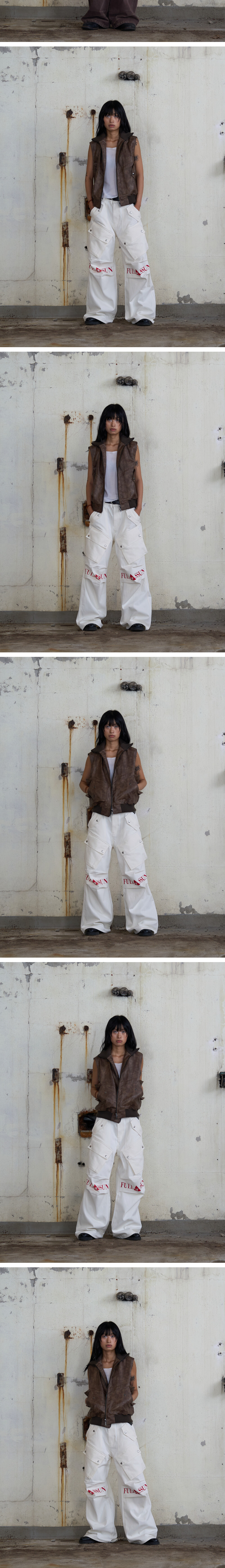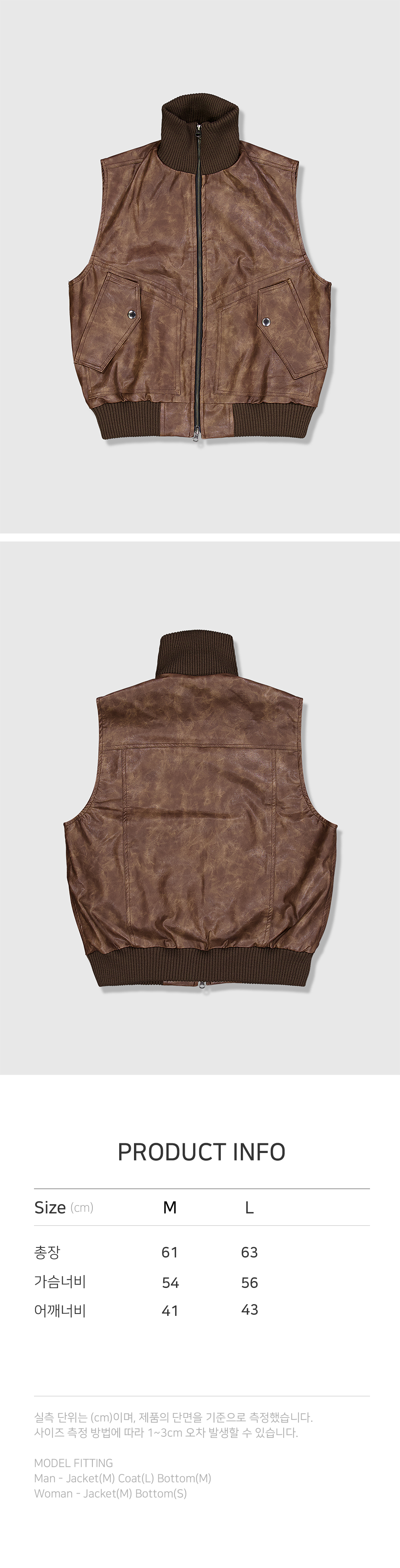 주문 후 5~7일 후 순차 발송됩니다. (주말/공휴일 제외) - 카고포켓 디테일의 레더조끼 - YKK사의 지퍼 및 부자재(퍼맥스) - Leather Crop Cargo Jacket 과 함께 스타일링 가능