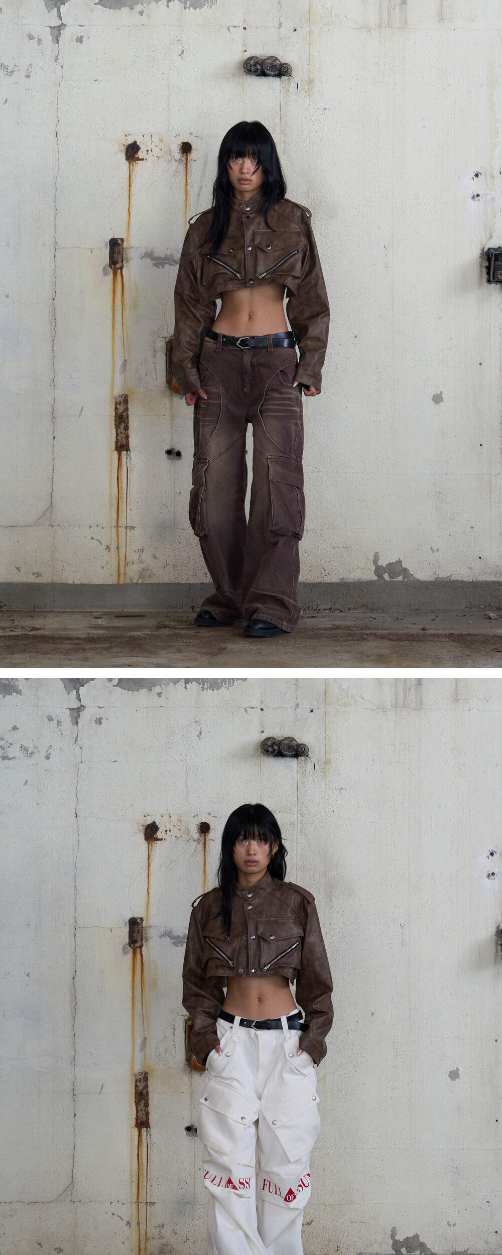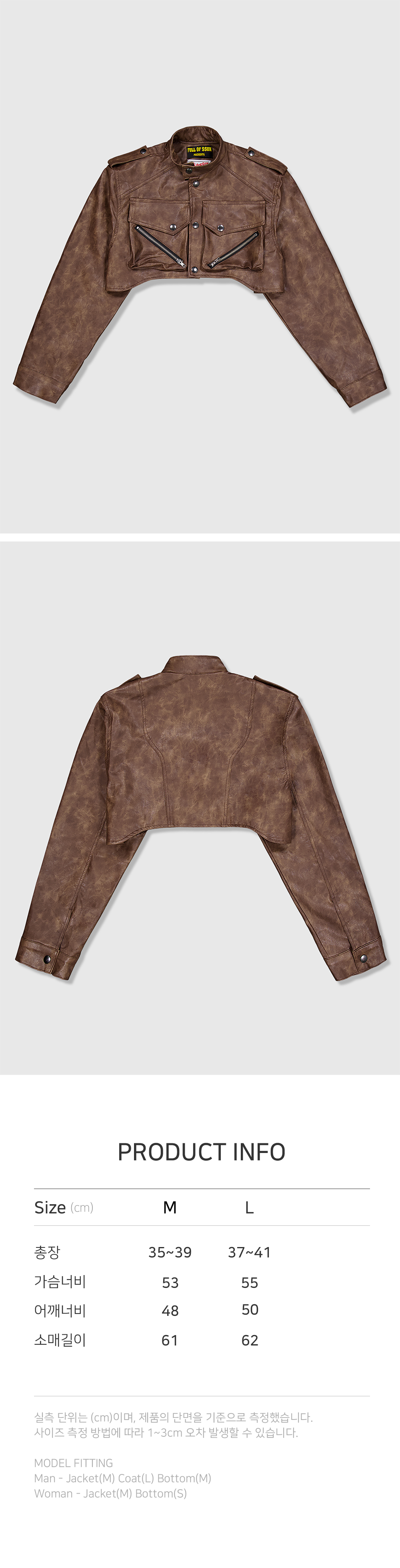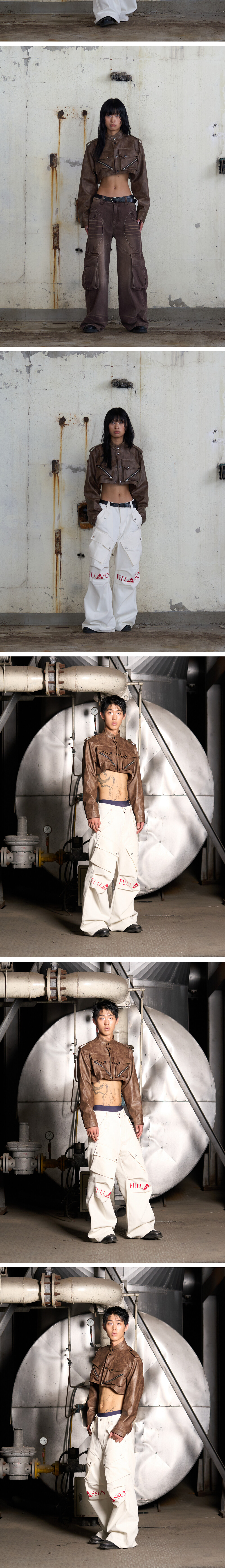 주문 후 5~7일 후 순차 발송됩니다. (주말/공휴일 제외) - 카고포켓 디테일의 크롭 레더자켓 - YKK사의 지퍼 및 부자재(퍼맥스) - Leather Cargo Vest 와 함께 스타일링 가능